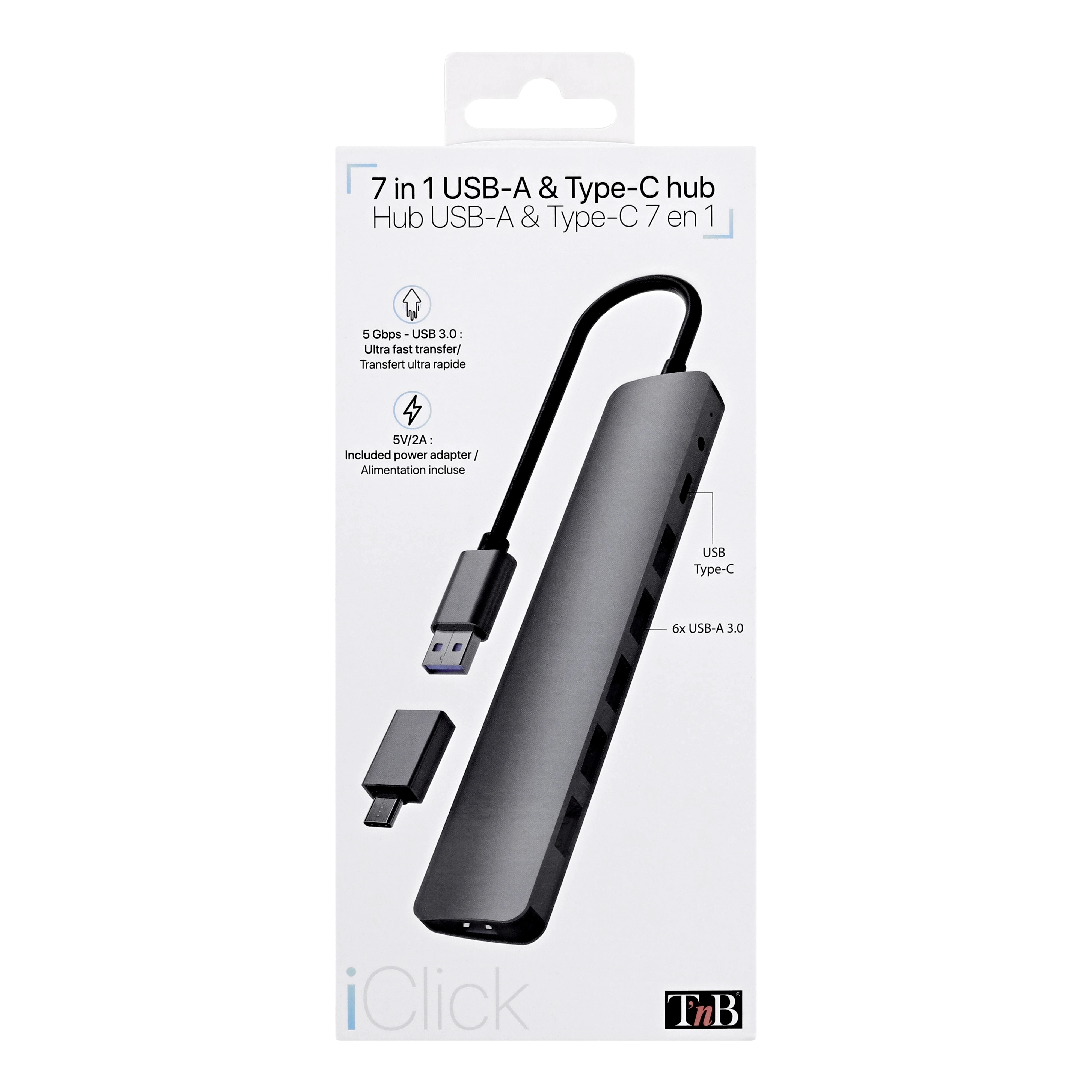 Connect 7 USB-A accessories simultaneously with this ultra-fast powered hub. Strong, slim and elegant thanks to its aluminum finish.