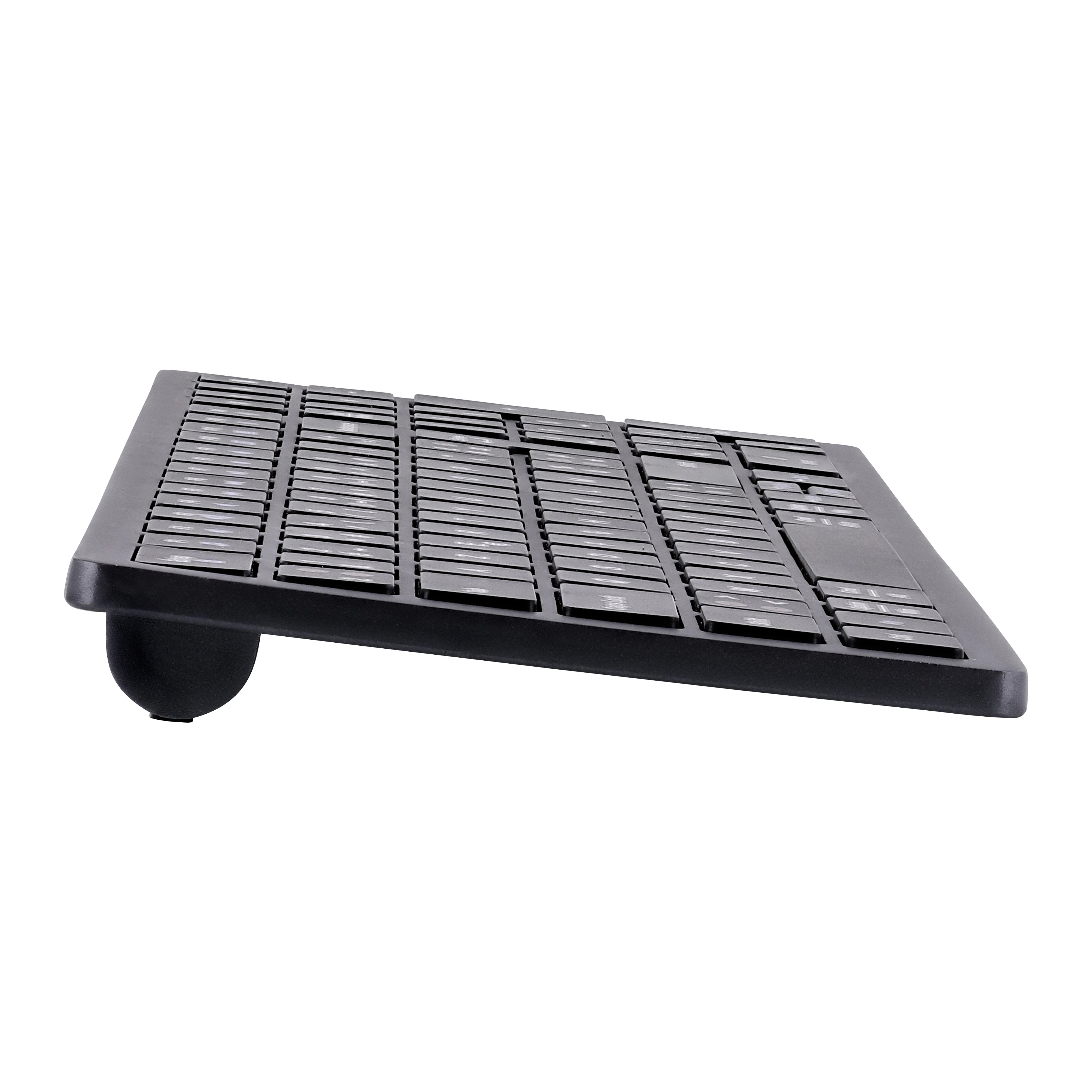 The keyboard body is only 7 mm thick, excluding the area containing the battery and allowing the keyboard to be upright for greater typing comfort.