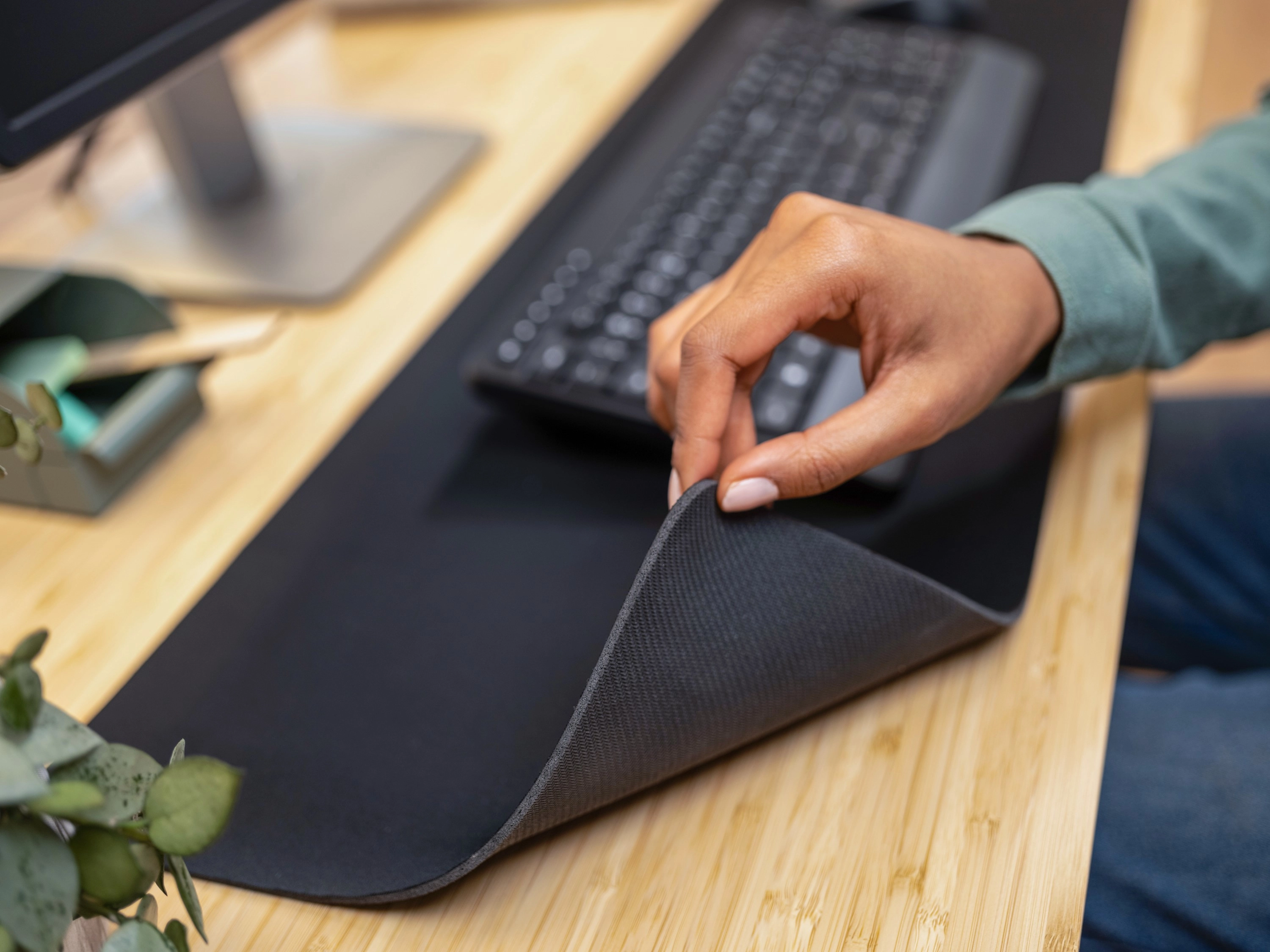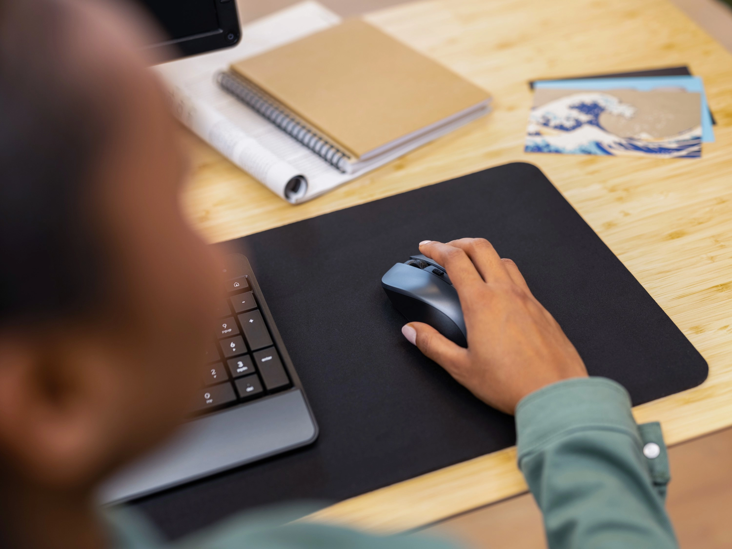 Extra-large mouse pad with optimized surface texture and enough room for both mouse and keyboard