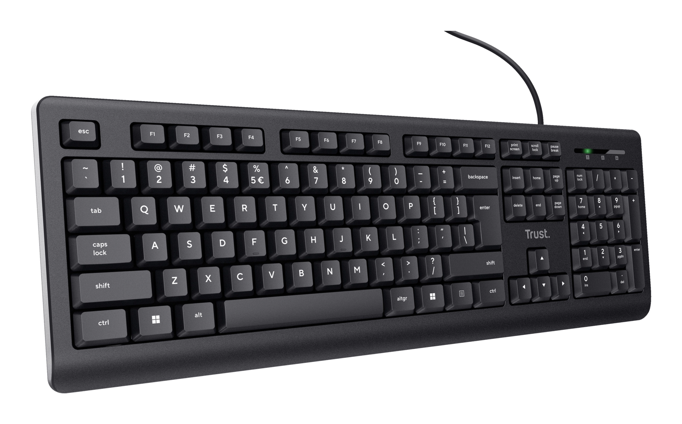 Full-size keyboard with a soft keystroke and spill-resistant design