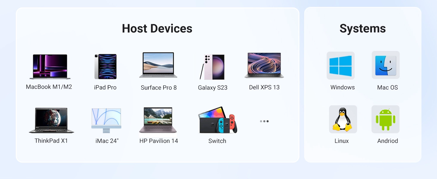 No matter what equipment you use - the UGREEN CM511 hub will certainly not disappoint you. The product is compatible with most devices of popular brands available on the market. Connect to it equally mouse, keyboard, monitor or laptop. It works perfectly with operating systems such as Windows, Mac OS or Linux.