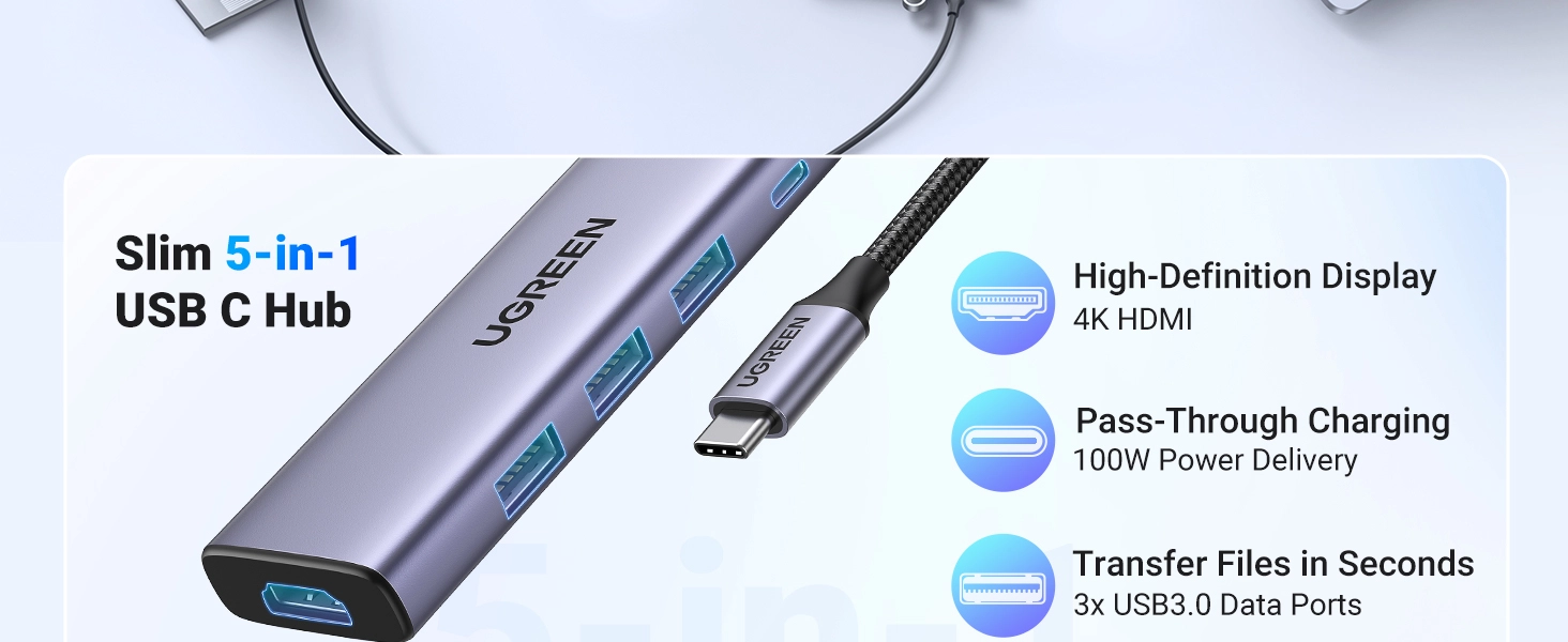 Does your laptop not have enough ports? Try the UGREEN CM511 multifunctional hub, with which you can easily increase the capabilities of your computer! The device is equipped with several ports such as HDMI, 3x USB-A 3.0 and SD/TF card slots. It enables data transfer speeds of up to 5 Gbps, so you can transfer documents between devices in no time! Expand your possibilities with UGREEN!