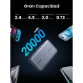 Ugreen 25188. Battery capacity: 20000 mAh, Fast charging technology: Power Delivery 3.0. USB Type-A output ports: 1, USB Type-C ports quantity: 2. Product colour: Grey