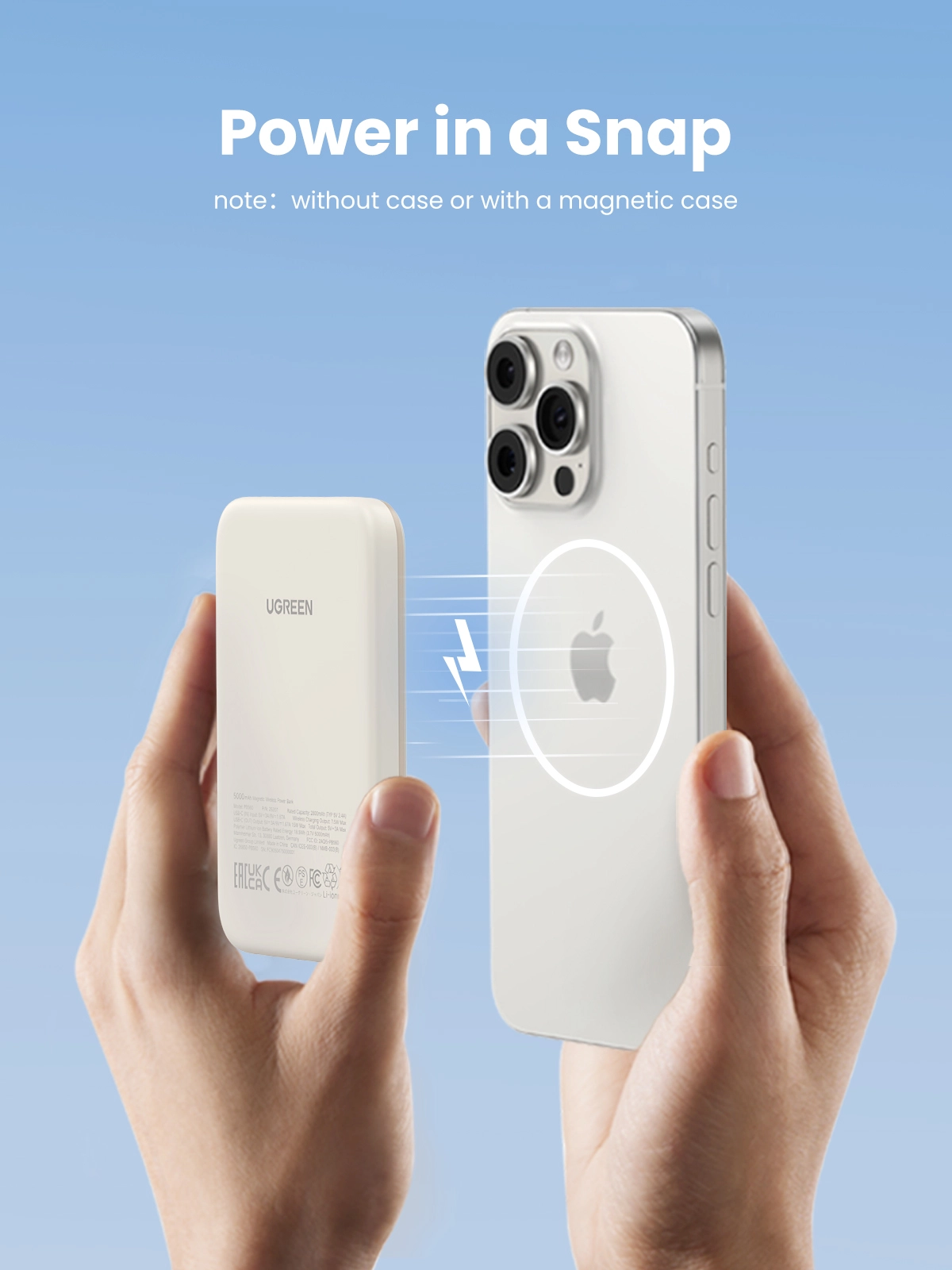 This UGREEN magnetic power bank securely attaches to your iPhone 15 Pro Max with a strong internal magnet, providing cable-free charging without worrying about slippage. It stays firmly in place, allowing easy one-handed use for video calls and selfies.