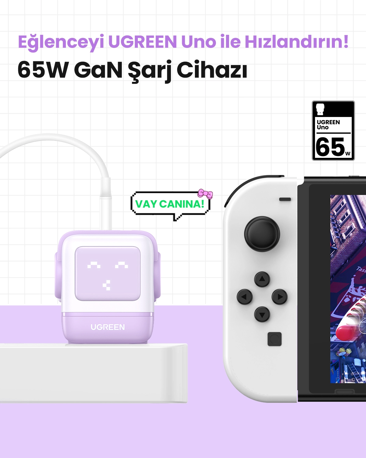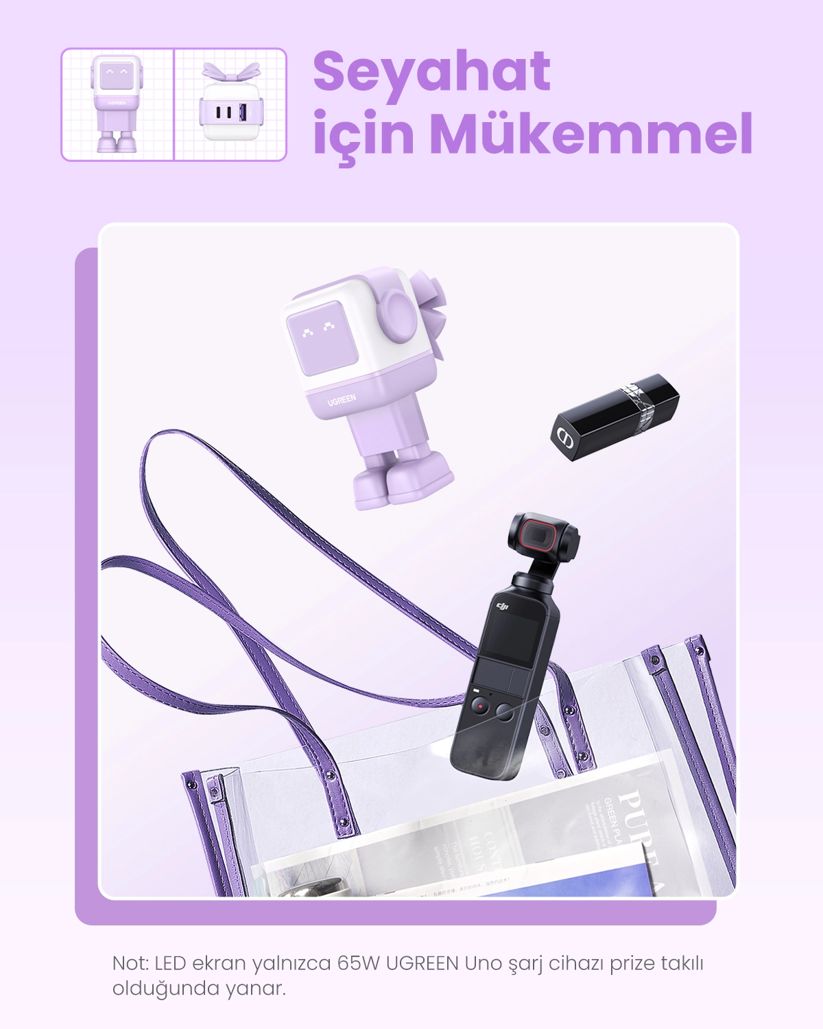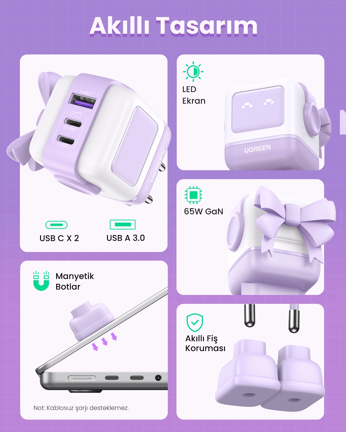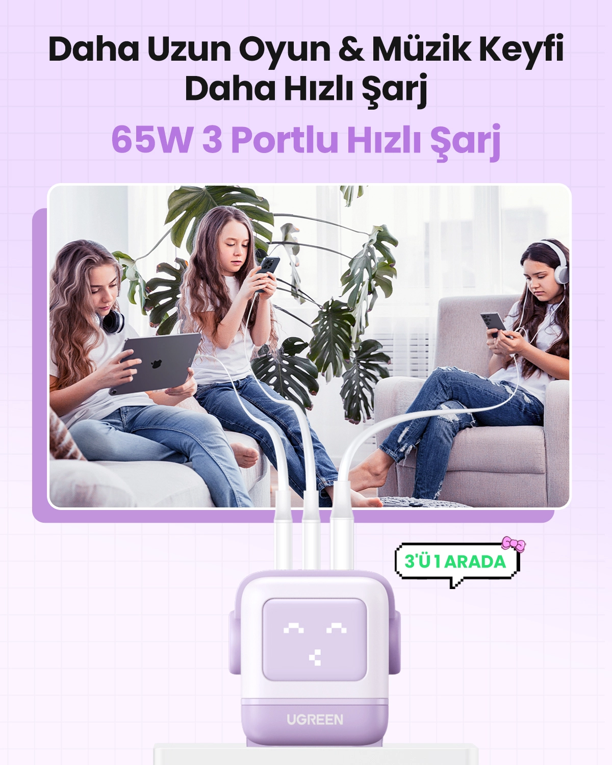Ugreen Nexode RG 65W 3-Port GaN. Charger type: Indoor, Power source type: AC, Charger compatibility: Mobile computer, Mobile phone, Mouse, Laptop, Power bank, Telephone, USB 2.0 ports quantity: 1, USB Type-C ports quantity: 2, Fast charging. Product colour: Pink