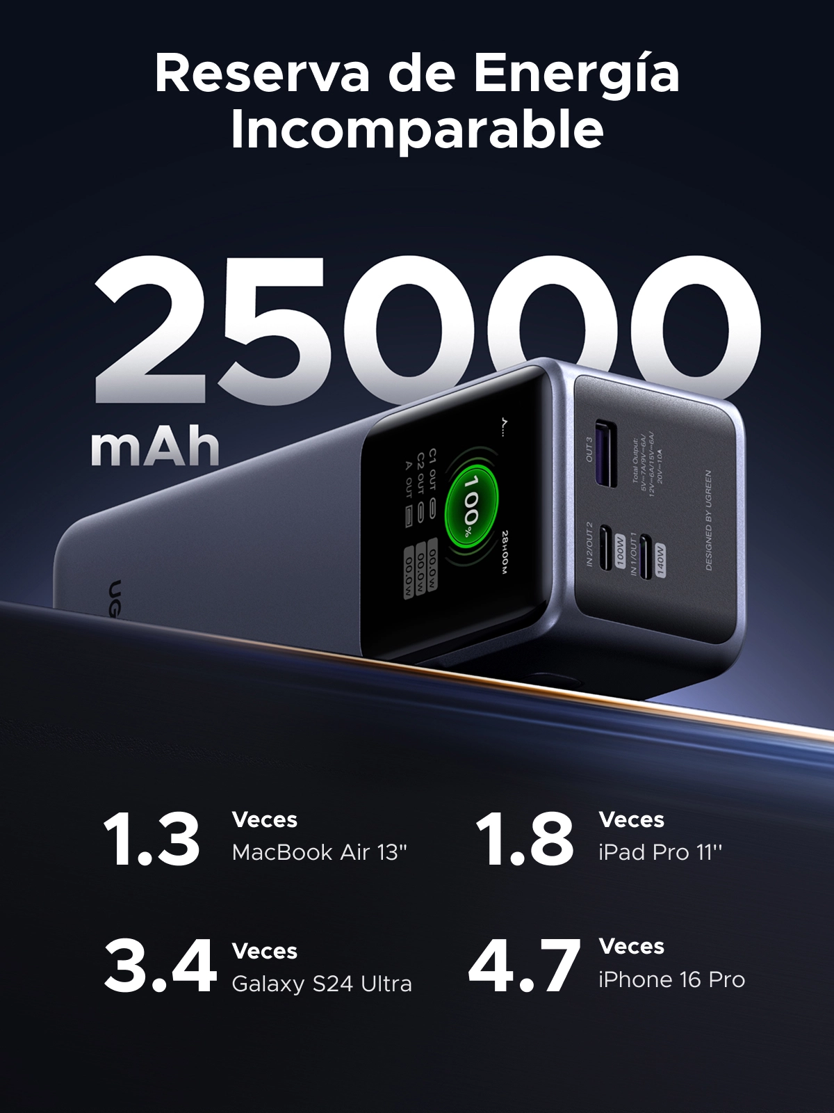 Ugreen 25000mAh 200W Fast Charging Powerbank. Battery capacity: 25000 mAh. Product colour: Grey