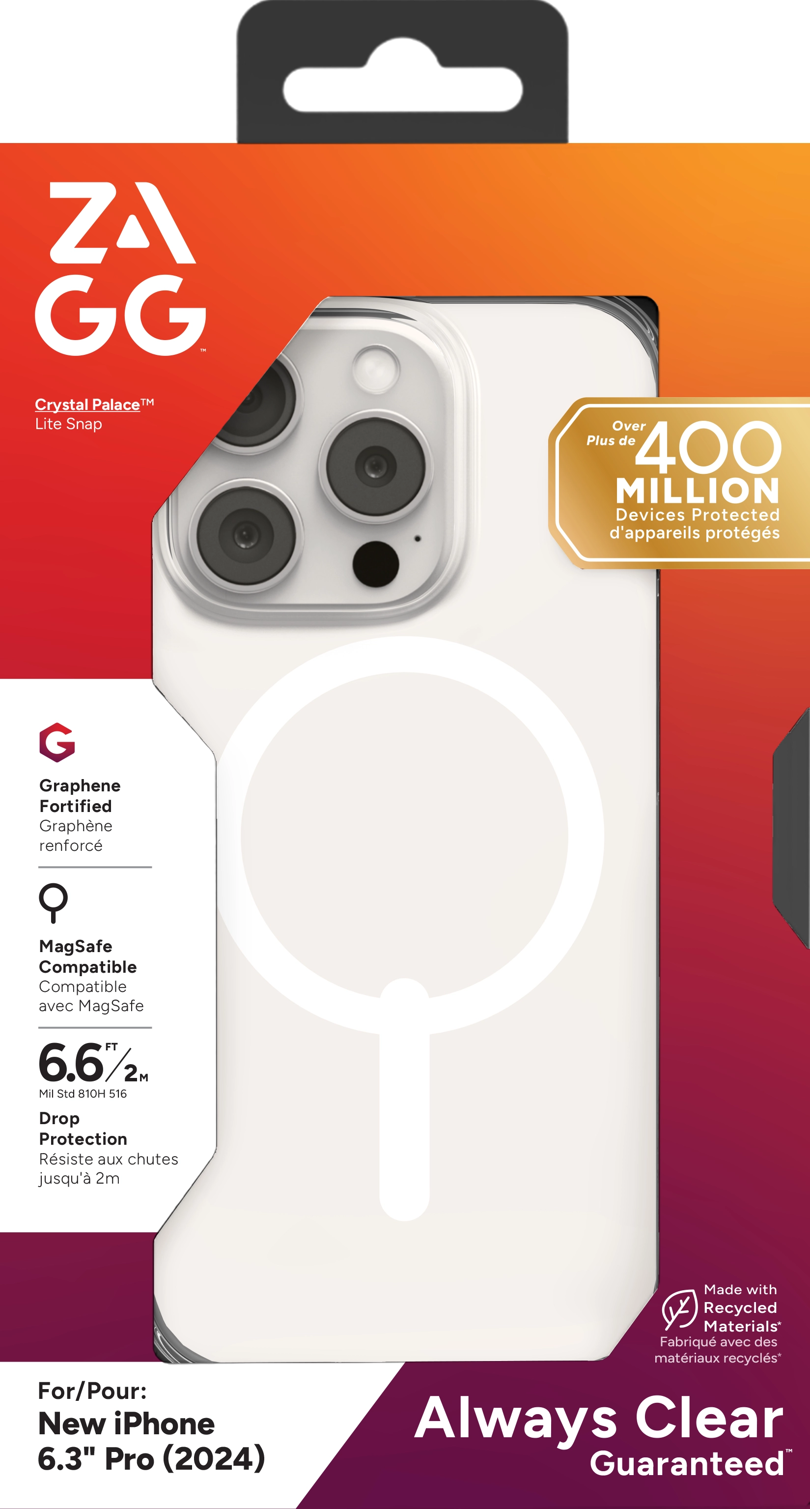 The transparent Crystal Palace Lite Snap case has a seamless design that shows off the sleek lines of your phone. Anti-yellowing technology helps maintain the case’s clarity. Crystal Palace Lite Snap is 40% lighter than previous designs, so it fits comfortably in your hand or your bag. Protect your phone from drops up to 6.6 feet while showing it off with the Crystal Palace Lite Snap case.