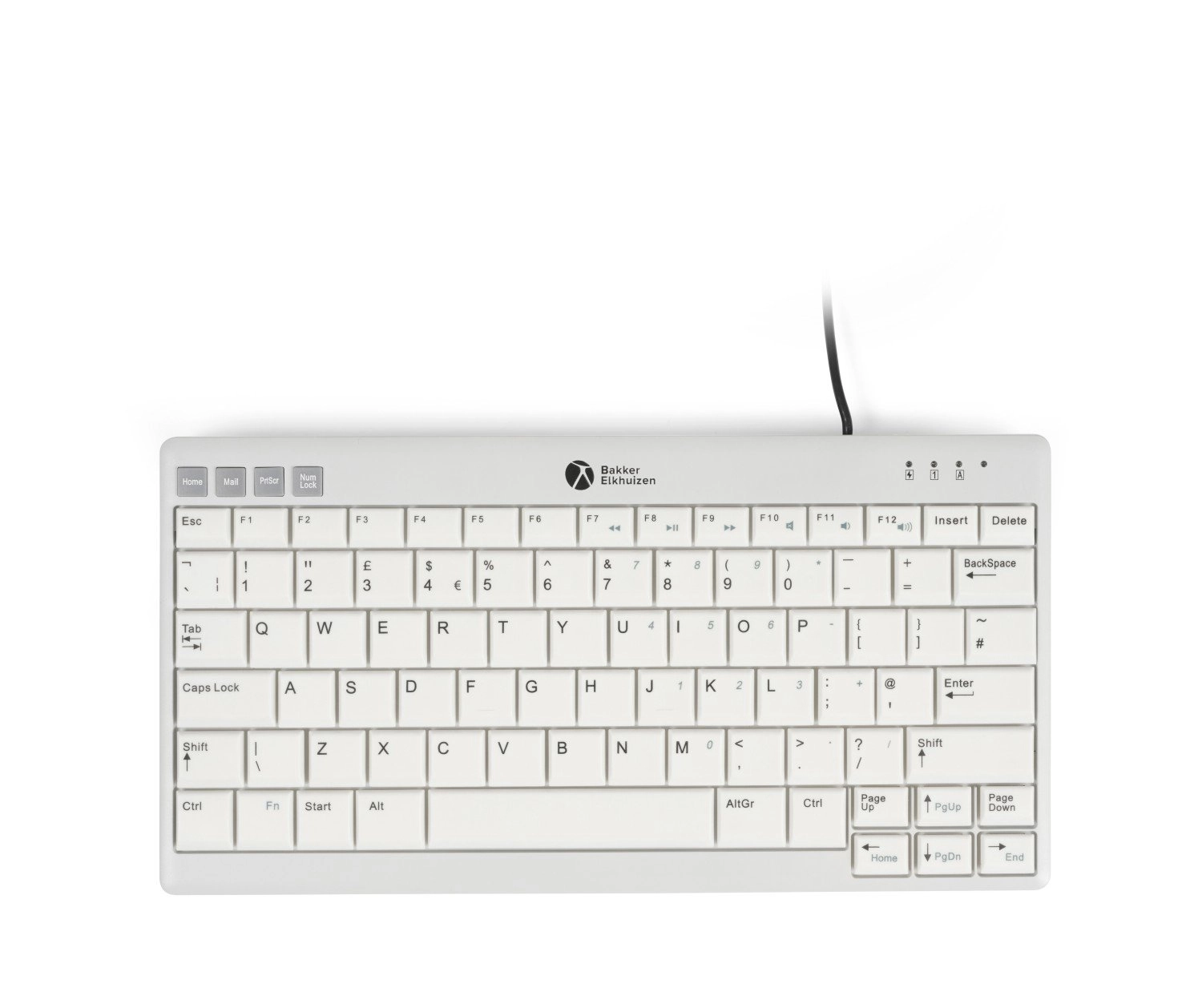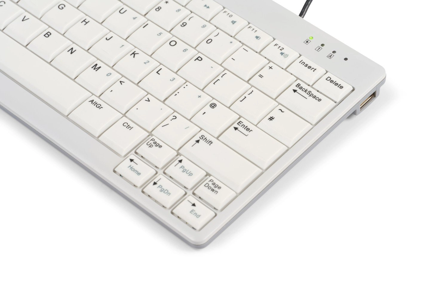 Ondanks zijn compacte formaat zit het UltraBoard 950 V2 boordevol functies. Het voldoet aan de ergonomische DIN EN ISO-normen voor toetsenborden. Het schaarmechanisme, de hartafstand van de toetsen van 19 mm en de holle toetsen met donkere letters op een witte achtergrond zorgen voor comfortabel en nauwkeurig typen. Extra functies zijn sneltoetsen, geïntegreerde multimediatoetsen en status-LED's voor een efficiënte workflow.