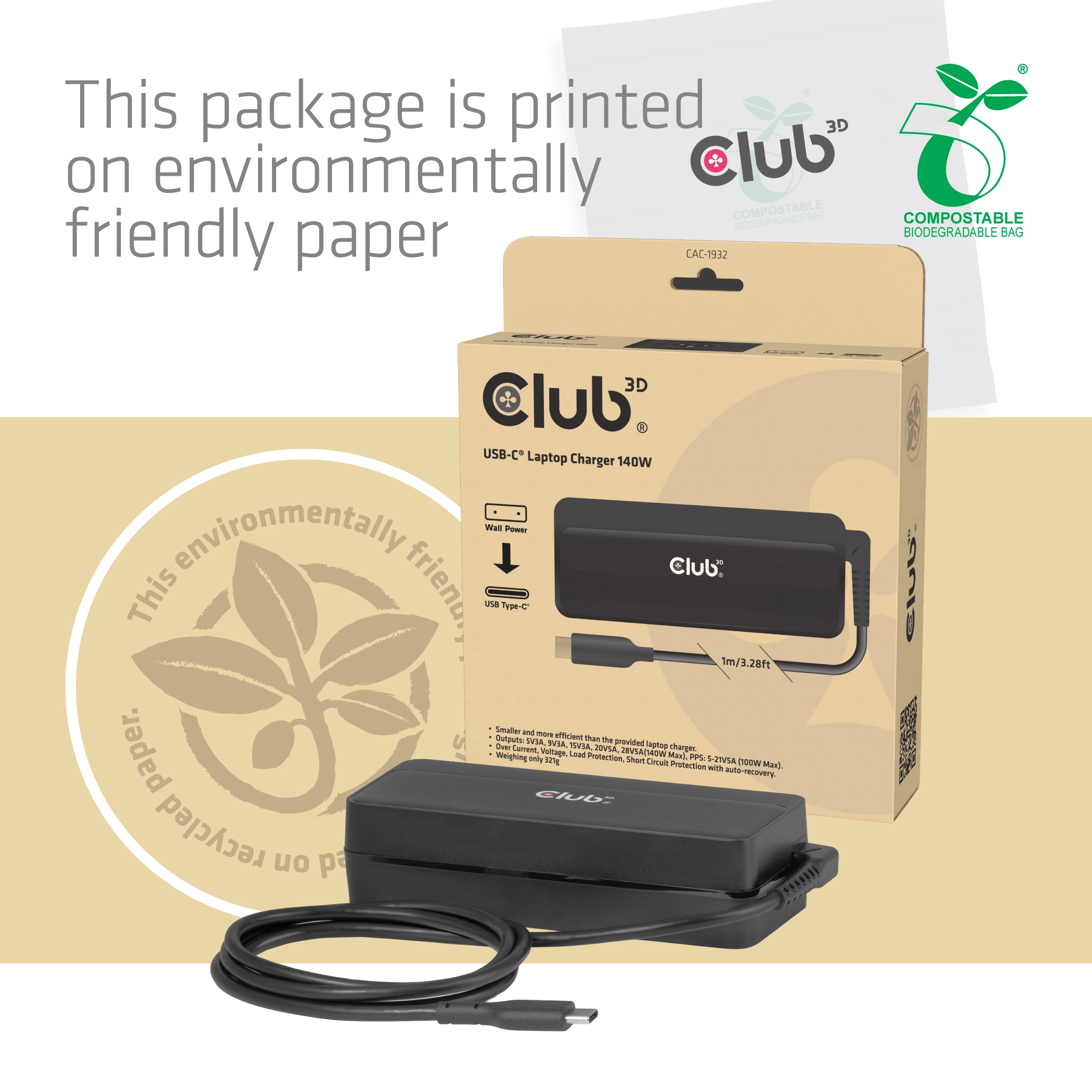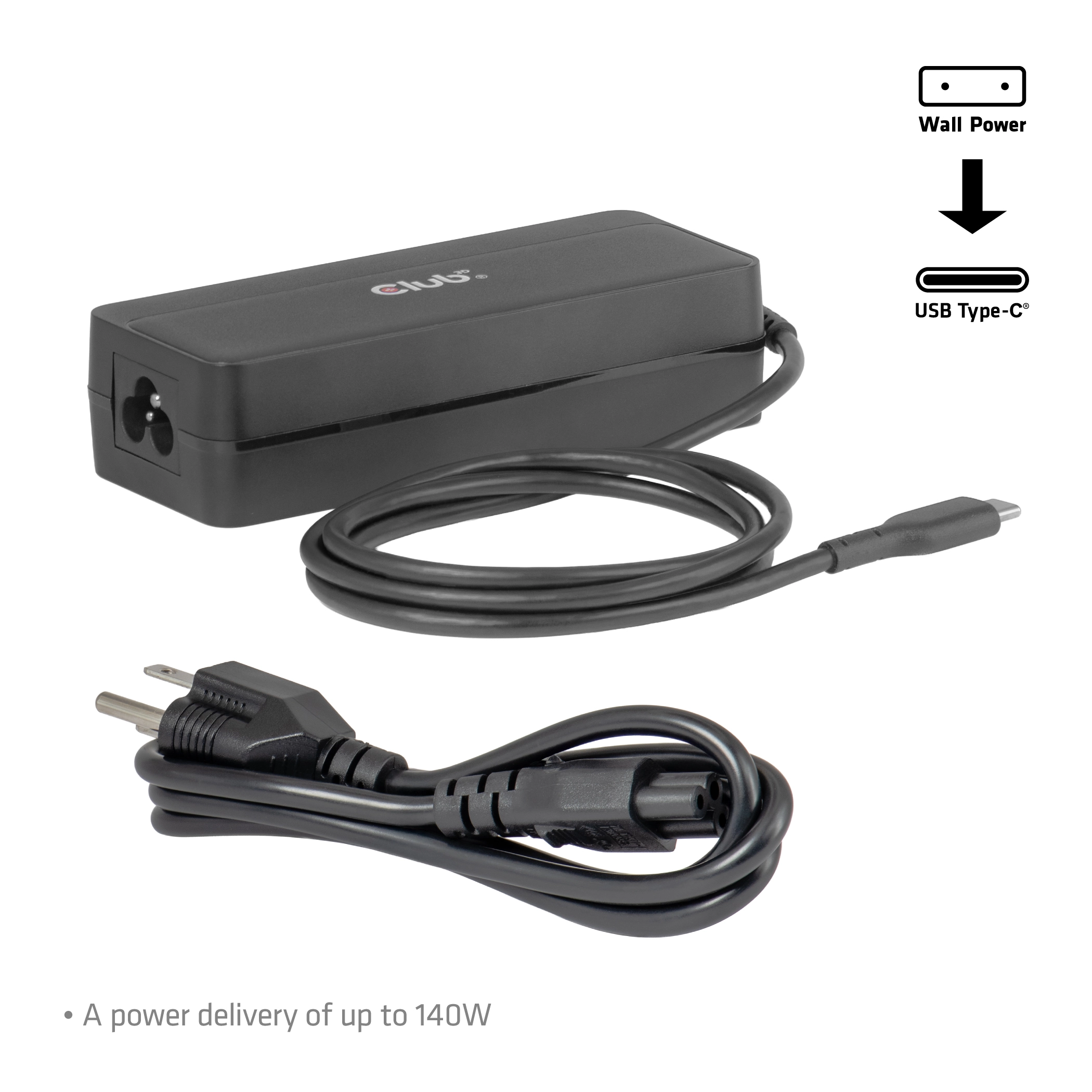 CLUB3D USB-C®-laptoplader 140 W. Type stroombron: AC, Lader compatibiliteit: Universeel, Snel opladen. Snoerlengte: 1 m, Kleur van het product: Zwart