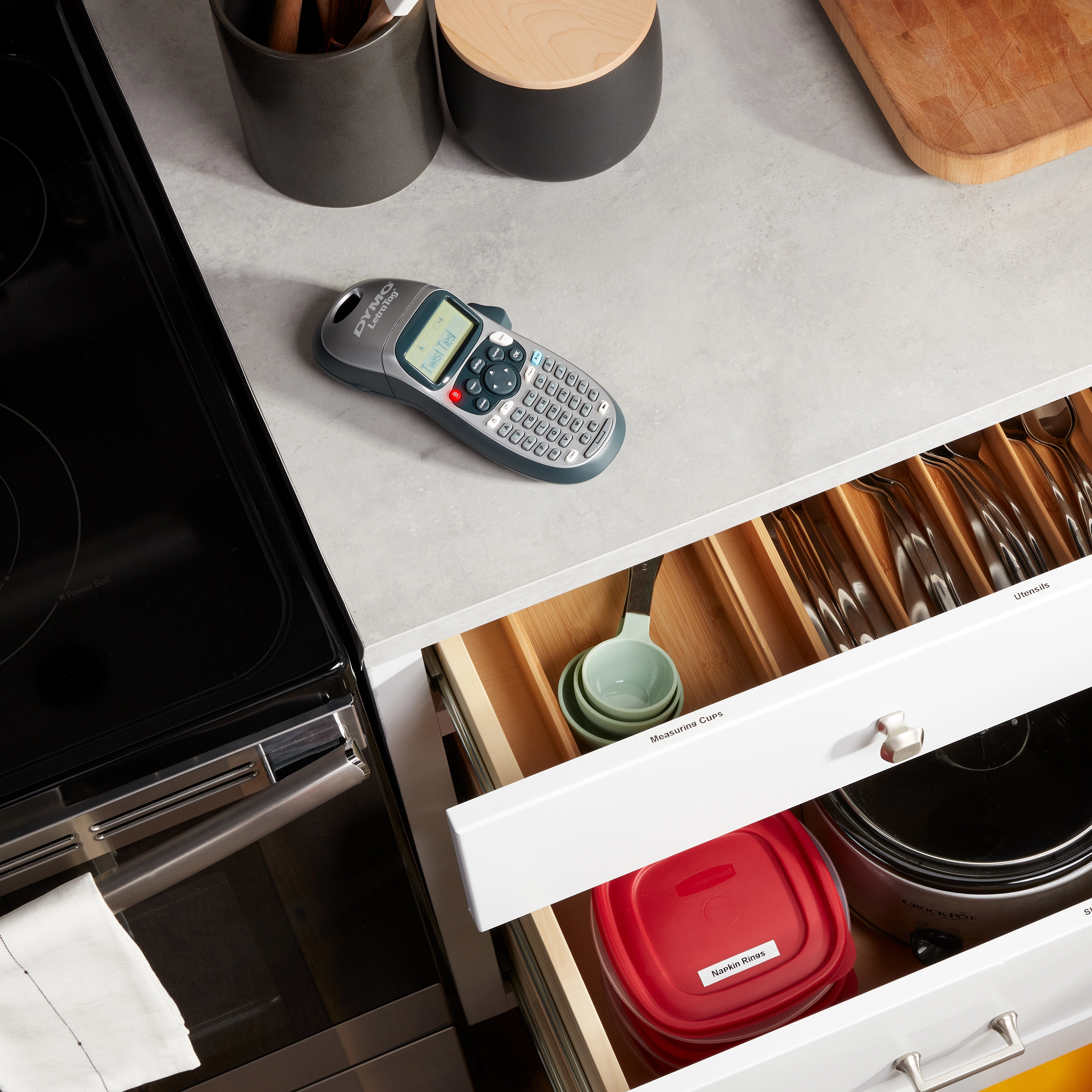 Deze lettertang biedt 2-regelig afdrukken, 5 lettergroottes, 7 afdrukstijlen, 8 soorten kaders, geheugen voor 9 labels, een datumstempel en 3 taalopties. Dankzij het lcd-scherm voor 13 tekens en de grafische weergave op deze labelprinter kunt u niet alleen berichten zien, maar ook het lettertype en de effecten voordat u afdrukt. Drukt af op Letra Tag LT-labels, die verkrijgbaar zijn in veel verschillende kleuren en in plastic, metalen en opstrijkbare labelvarianten. Voor thermisch afdrukken hebt u geen inkt of toner nodig. Schakelt automatisch uit voor het besparen van stroom. Gebruiksvriendelijke, snel toegankelijke knoppen voor snel en eenvoudig etiketten maken.