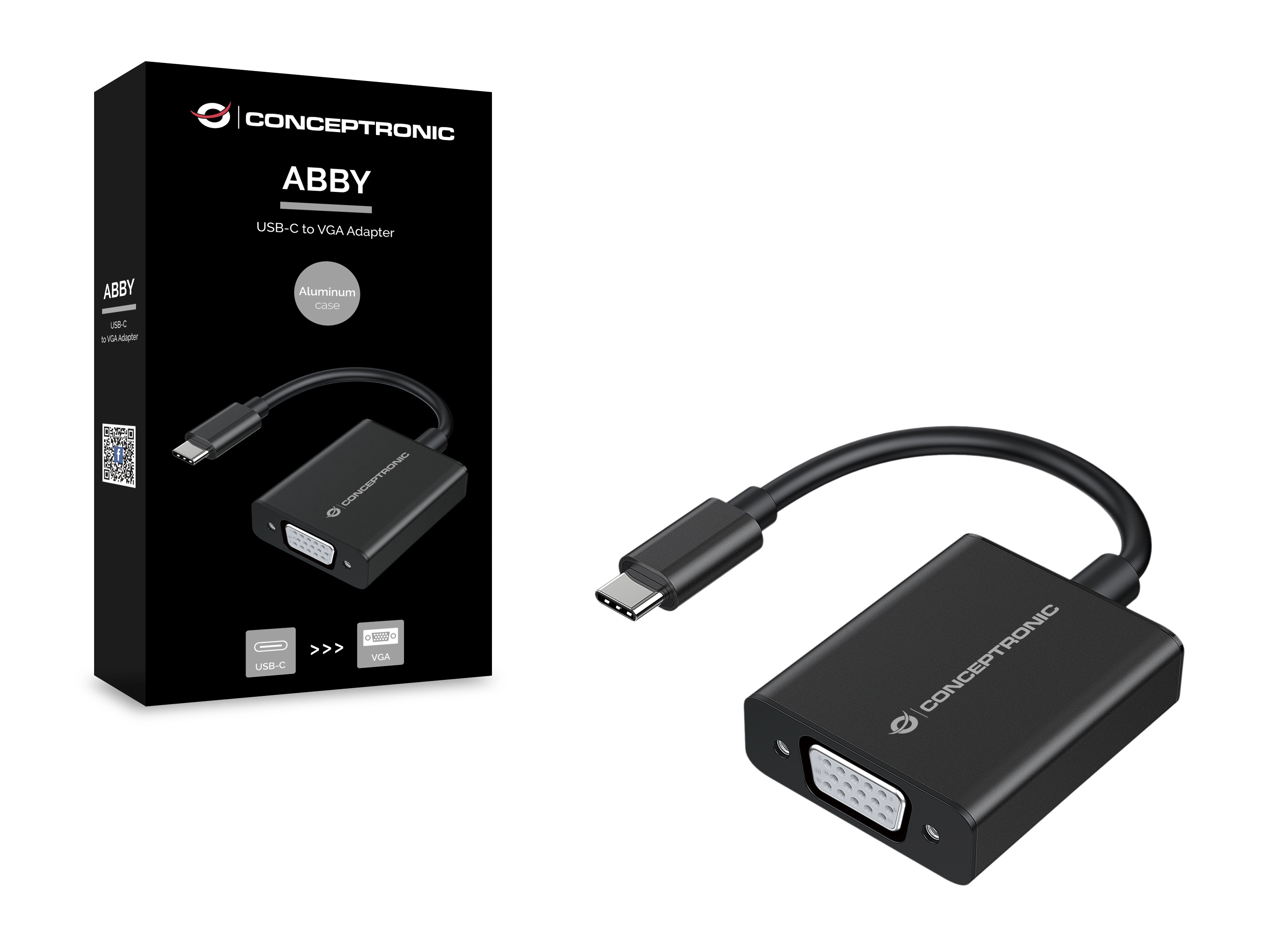 Conceptronic ABBY05B. USB-connectortype: USB Type-C, Geslacht USB-connector: Mannelijk, USB-connector vormfactor: Recht. Kleur van het product: Zwart, Materiaal behuizing: Aluminium. Breedte: 38 mm, Diepte: 46, 6 mm, Hoogte: 13, 4 mm. Breedte verpakking: 23 mm, Diepte verpakking: 75 mm, Hoogte verpakking: 148 mm. Hoeveelheid per (buitenste) hoofdverpakking: 50 stuk(s), (Buitenste) hoofdverpakking breedte: 230 mm, (Buitenste) hoofdverpakking lengte: 180 mm
