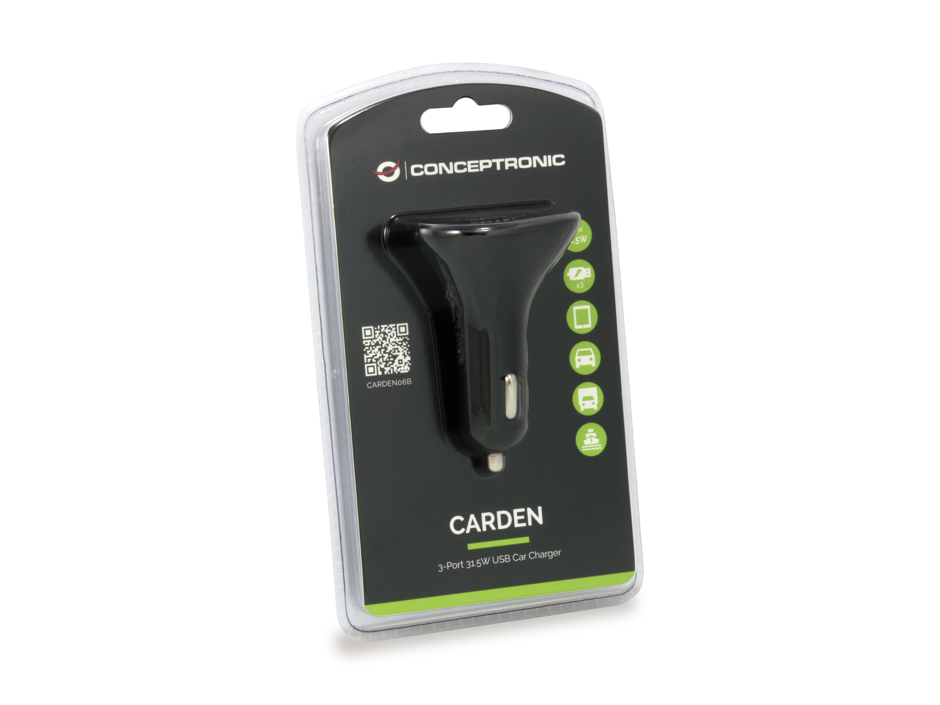 Conceptronic CARDEN06B. Type oplader: Auto, Type stroombron: Sigarettenaansteker, Lader compatibiliteit: Universeel. Ingangsspanning: 12 - 24 V, Uitgangsspanning (max): 5 V. Kleur van het product: Zwart