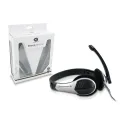 De Chatstar is een comfortabele stereo hoofdtelefoon om thuis of op kantoor te gebruiken voor muziek luisteren games spelen internettelefonie chatten en video conference Inclusief handige volume afstandsbediening met stilte knop klem flexibele microfoon en kabel van 2.0 meter.
