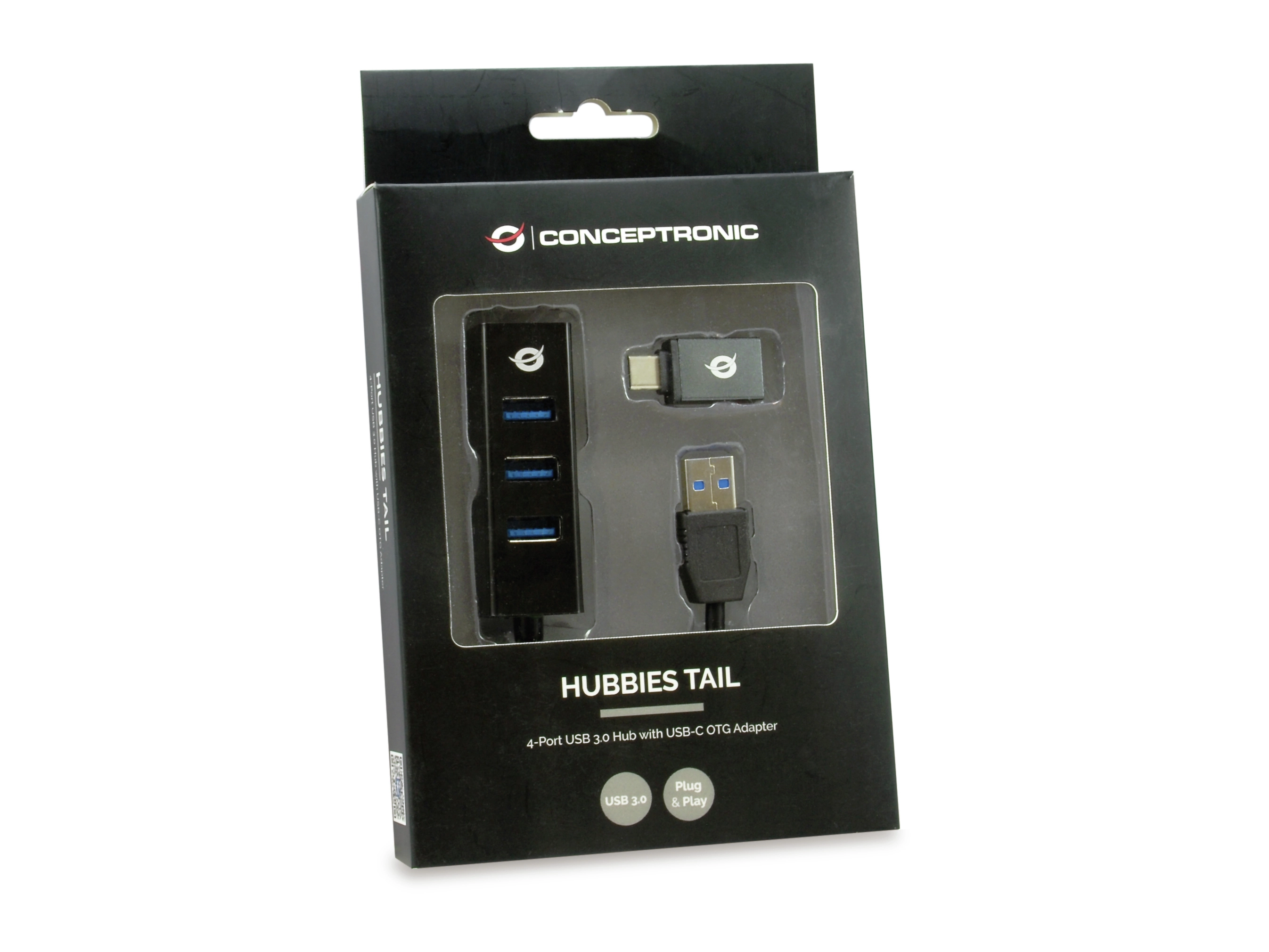 Conceptronic HUBBIES04B. Hostinterface: USB 3.2 Gen 1 (3.1 Gen 1) Type-A, Hub-interfaces: USB 3.2 Gen 1 (3.1 Gen 1) Type-A. Overdrachtssnelheid: 5000 Mbit/s, Kleur van het product: Zwart, Materiaal behuizing: Kunststof. Soort voeding: USB. Breedte: 21 mm, Diepte: 66 mm, Hoogte: 19 mm. Breedte verpakking: 112, 5 mm, Diepte verpakking: 24, 5 mm, Hoogte verpakking: 184 mm