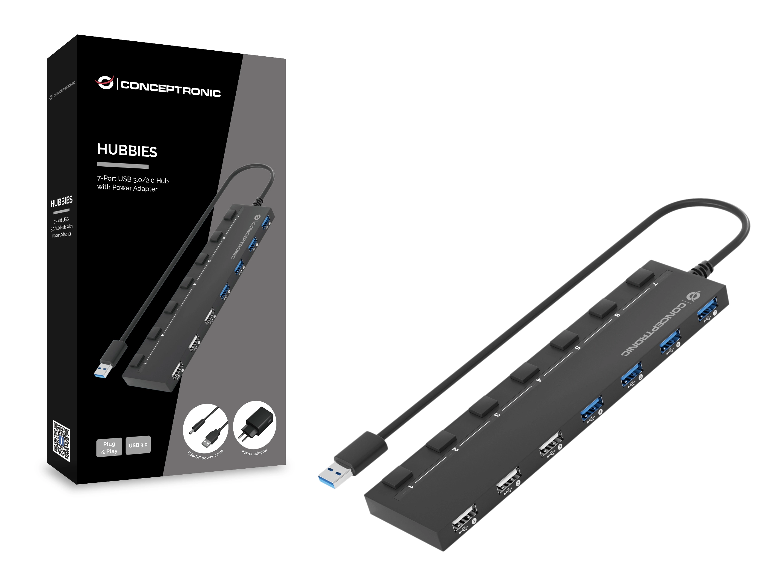 Conceptronic HUBBIES09BP. Hostinterface: USB 3.2 Gen 1 (3.1 Gen 1) Type-A, Hub-interfaces: USB 2.0, USB 3.2 Gen 1 (3.1 Gen 1) Type-A. Overdrachtssnelheid: 5000 Mbit/s, Kleur van het product: Zwart, Snoerlengte: 0, 9 m. Ingangsspanning: 5 V, Stroom: 2.4 A. Ondersteunt Windows: Windows 10, Windows 10 Education, Windows 10 Education x64, Windows 10 Enterprise, Windows 10. . . , Ondersteunt Mac-besturingssysteem: Mac OS X 10.10 Yosemite, Mac OS X 10.11 El Capitan, Mac OS X 10.12 Sierra, Mac OS X 10.13 High. . . . Breedte: 175 mm, Diepte: 51 mm, Hoogte: 15 mm