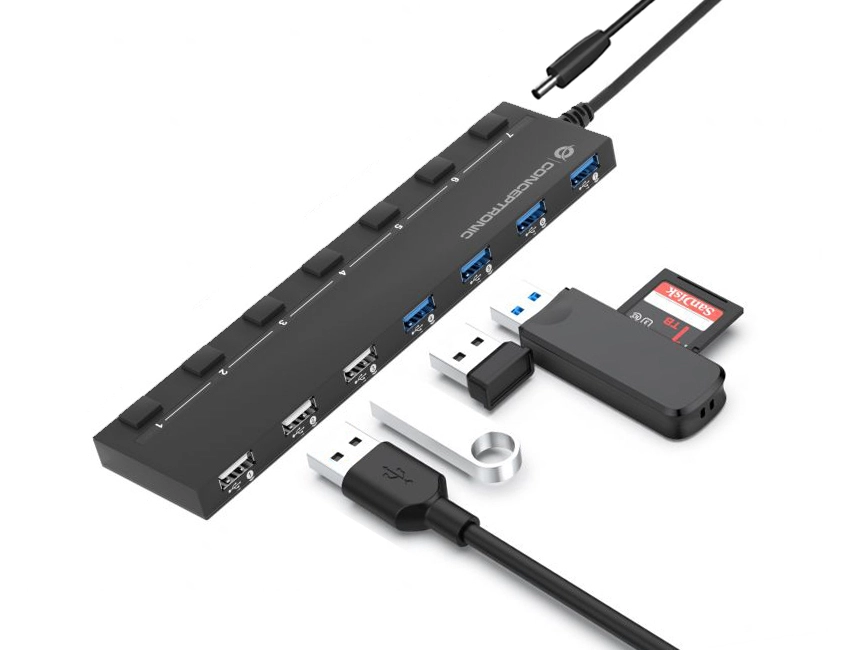 7-Port USB 3.0/2.0 Hub with Power Adapter - 90cm Cable - Individual Power Switch - USB-A 3.0 x 4 - USB-A 2.0 x 3