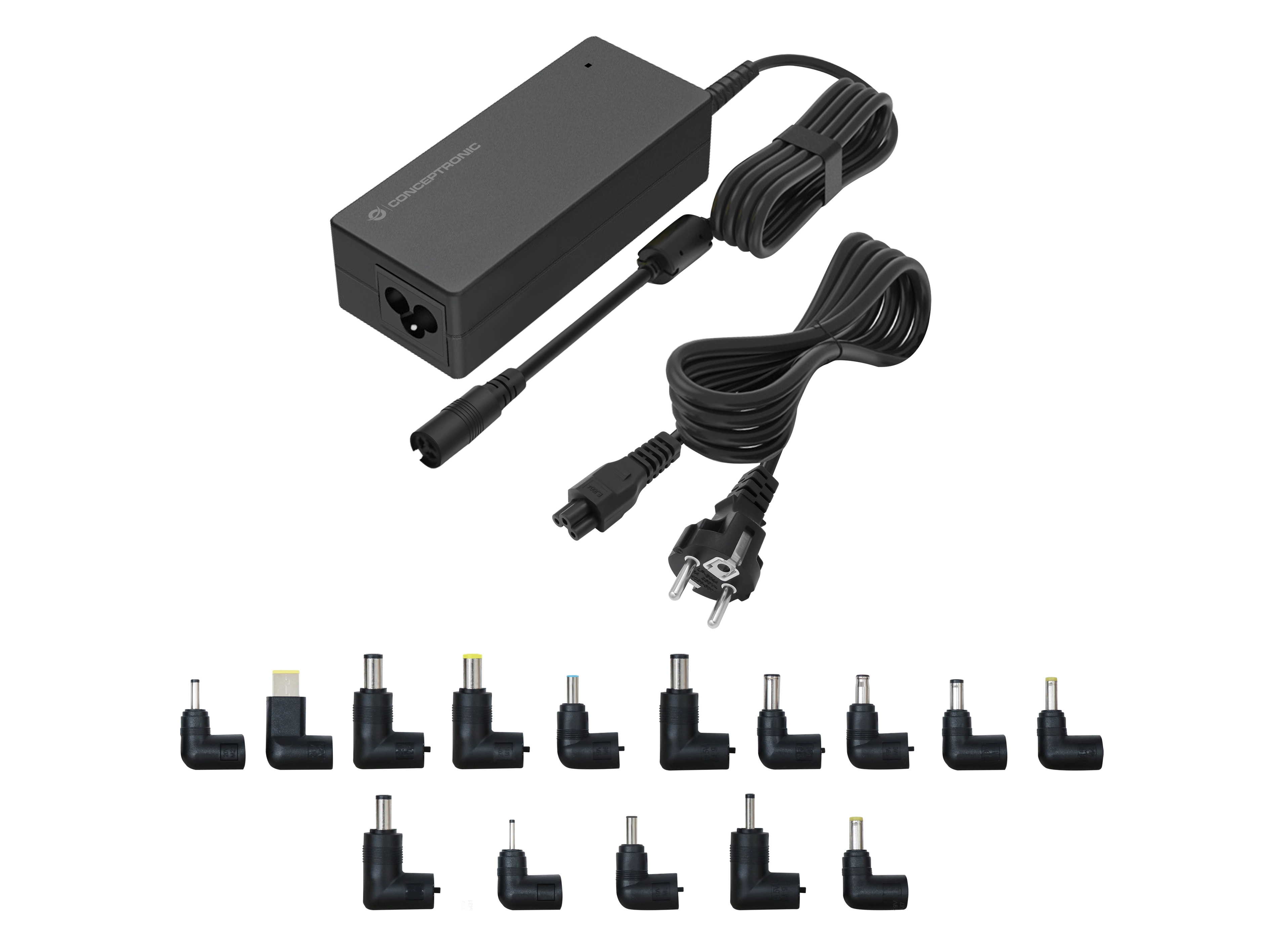 Conceptronic OZUL08B15. Bedoeld voor: Laptop, Soort voeding: Binnen, Ingangsspanning: 100 - 240 V. Kleur van het product: Zwart. Certificaten van naleving: CE, RoHS. Duurzaamheidscertificaten: ErP. Breedte: 49 mm, Diepte: 126 mm, Hoogte: 33 mm