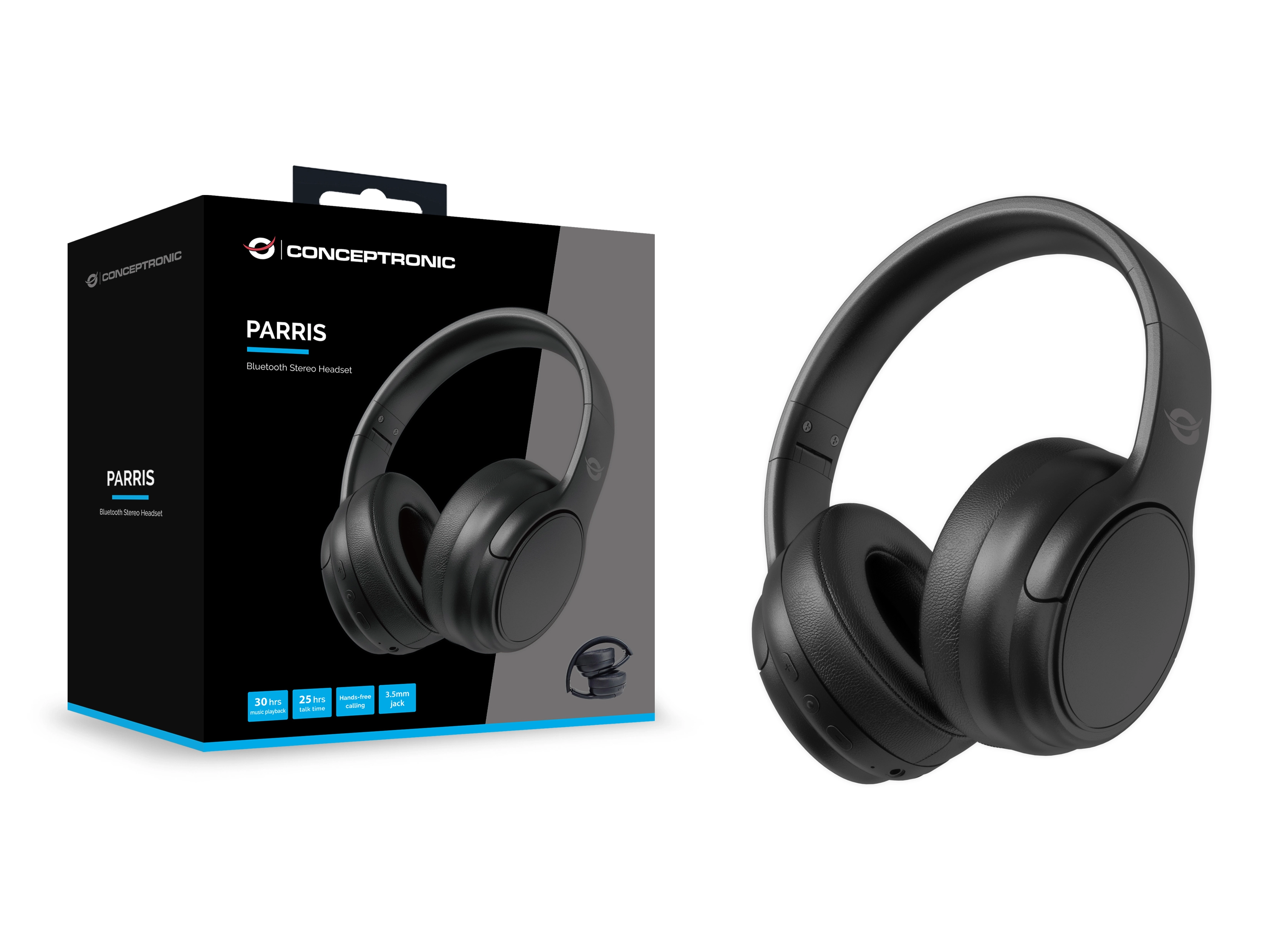 Conceptronic PARRIS03B. Type product: Headset. Connectiviteitstechnologie: Bedraad en draadloos, Bluetooth. Aanbevolen gebruik: Oproepen/muziek. Frequentiebereik koptelefoon: 20 - 20000 Hz. Gewicht: 198, 5 g. Kleur van het product: Zwart