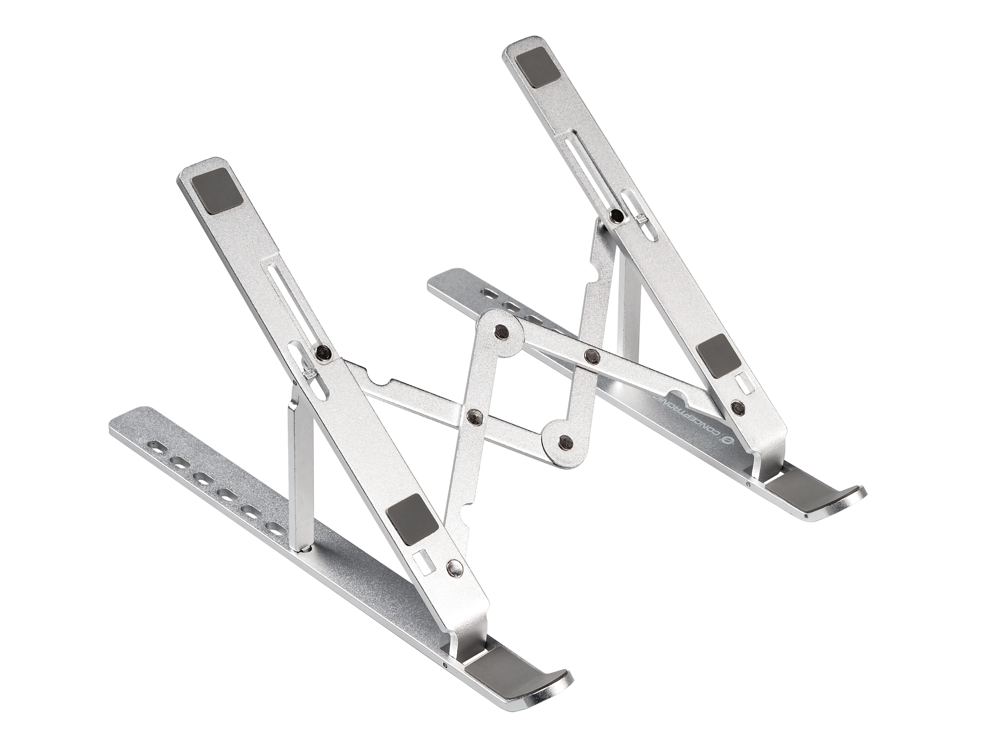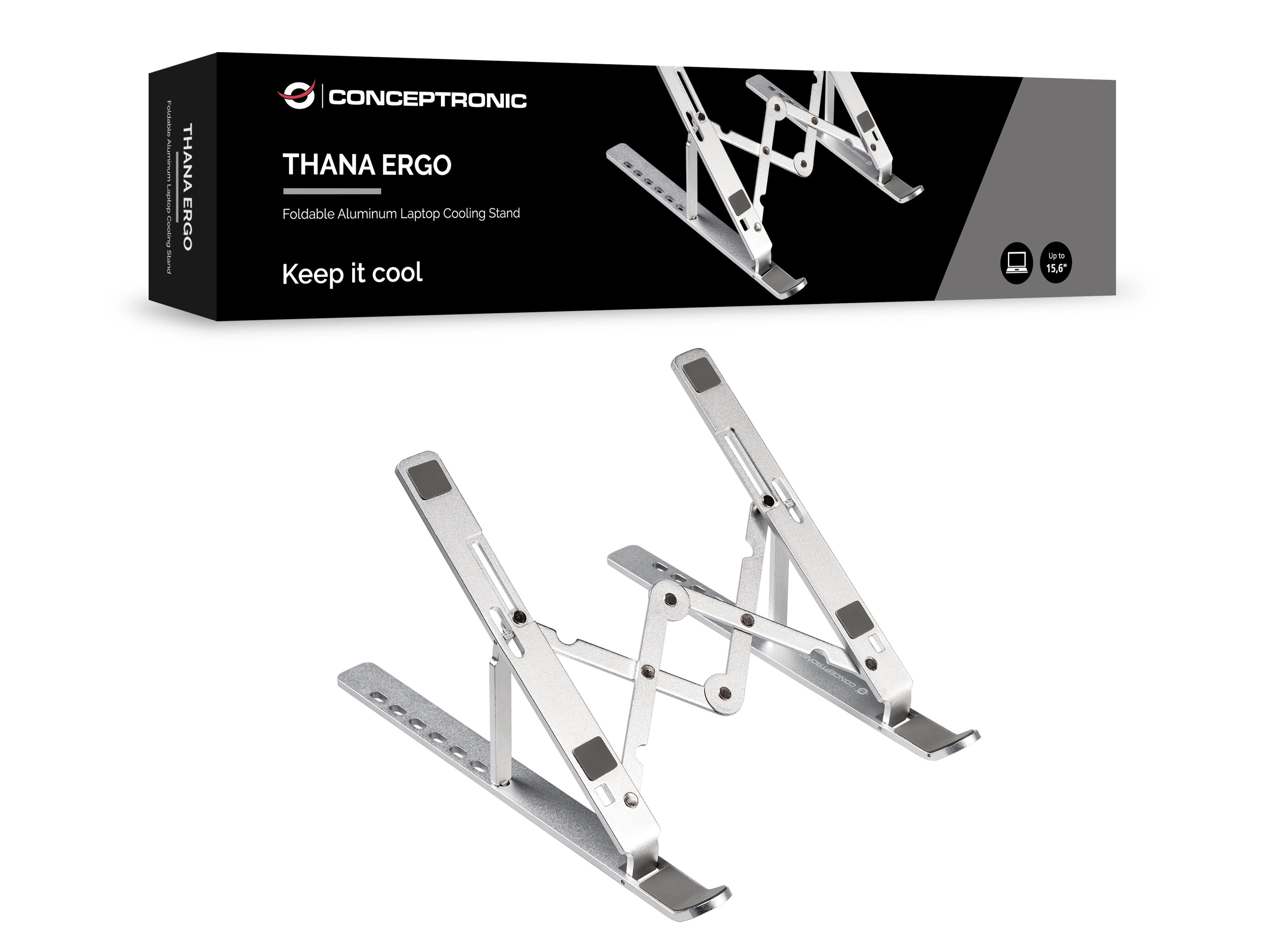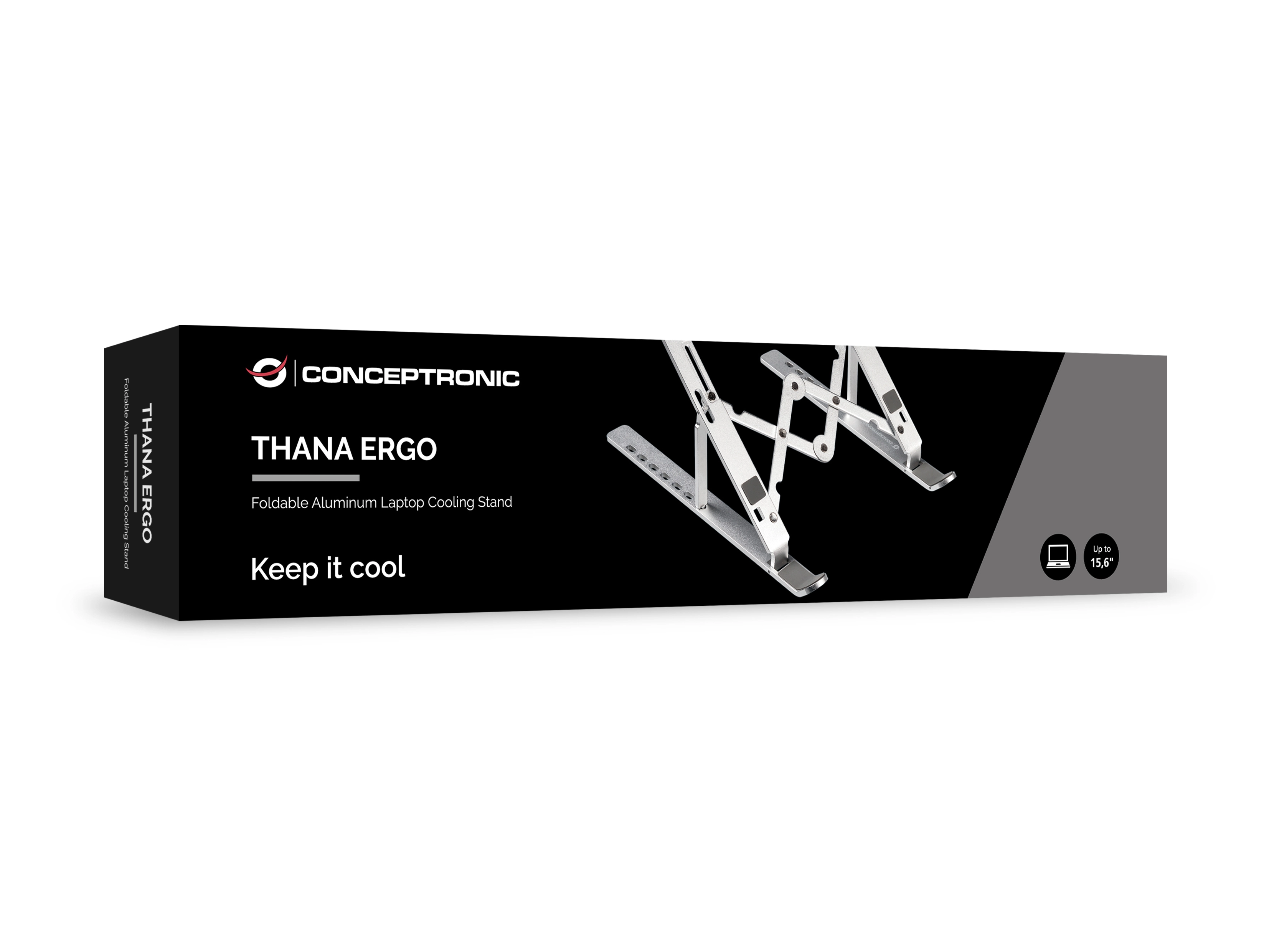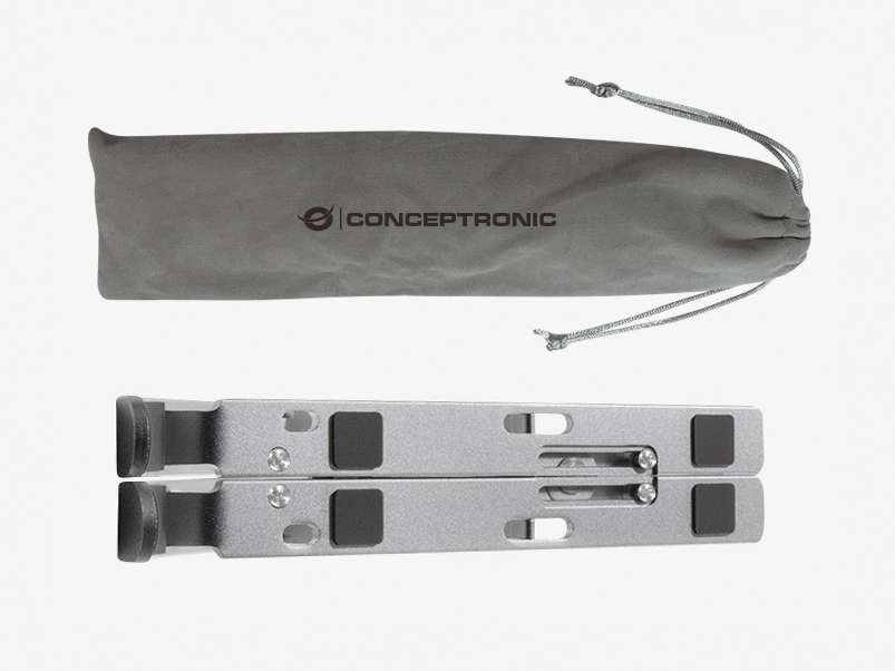 Conceptronic THANA04S. Type product: Laptopstandaard, Kleur van het product: Zilver, Materiaal: Aluminium. Breedte: 255 mm, Diepte: 45 mm, Hoogte: 18 mm. Breedte verpakking: 270 mm, Diepte verpakking: 55 mm, Hoogte verpakking: 28 mm. (Buitenste) hoofdverpakking breedte: 29 mm, (Buitenste) hoofdverpakking lengte: 28 mm, (Buitenste) hoofdverpakking hoogte: 24 mm
