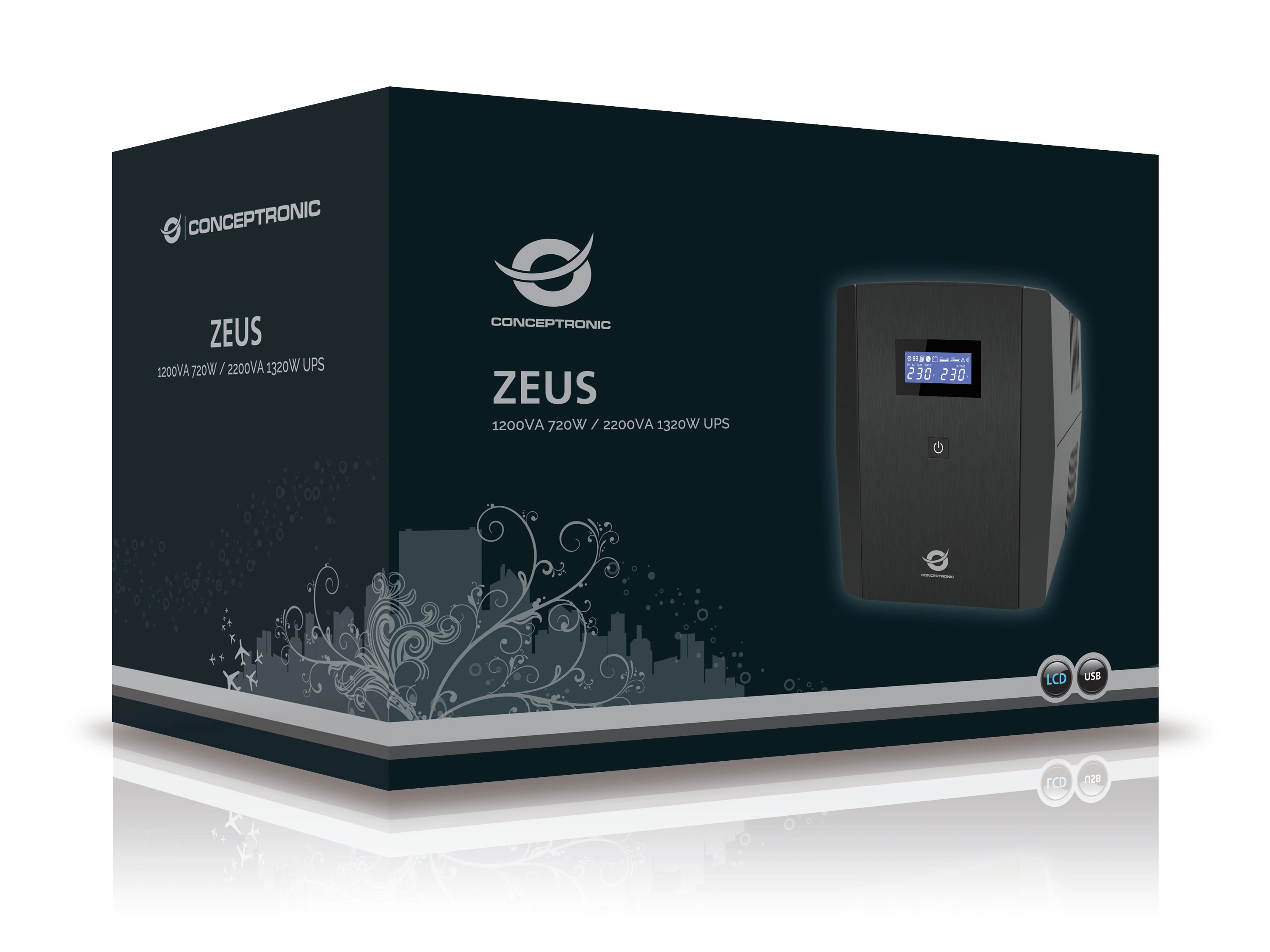 Conceptronic ZEUS03EM. UPS-topologie: Line-interactive, Output power capacity: 1, 2 kVA, Uitgangsvermogen: 720 W. Stopcontacttypes: IEC Jumpers, Type F, Aantal AC uitgangen: 5 AC-uitgang(en). Accu/Batterij voltage: 24 V, Oplaadduur batterij: 8 uur. Vormfactor: Compact, Kleur van het product: Zwart, Type koeling: Actief. Meegeleverde kabels: USB-kabel