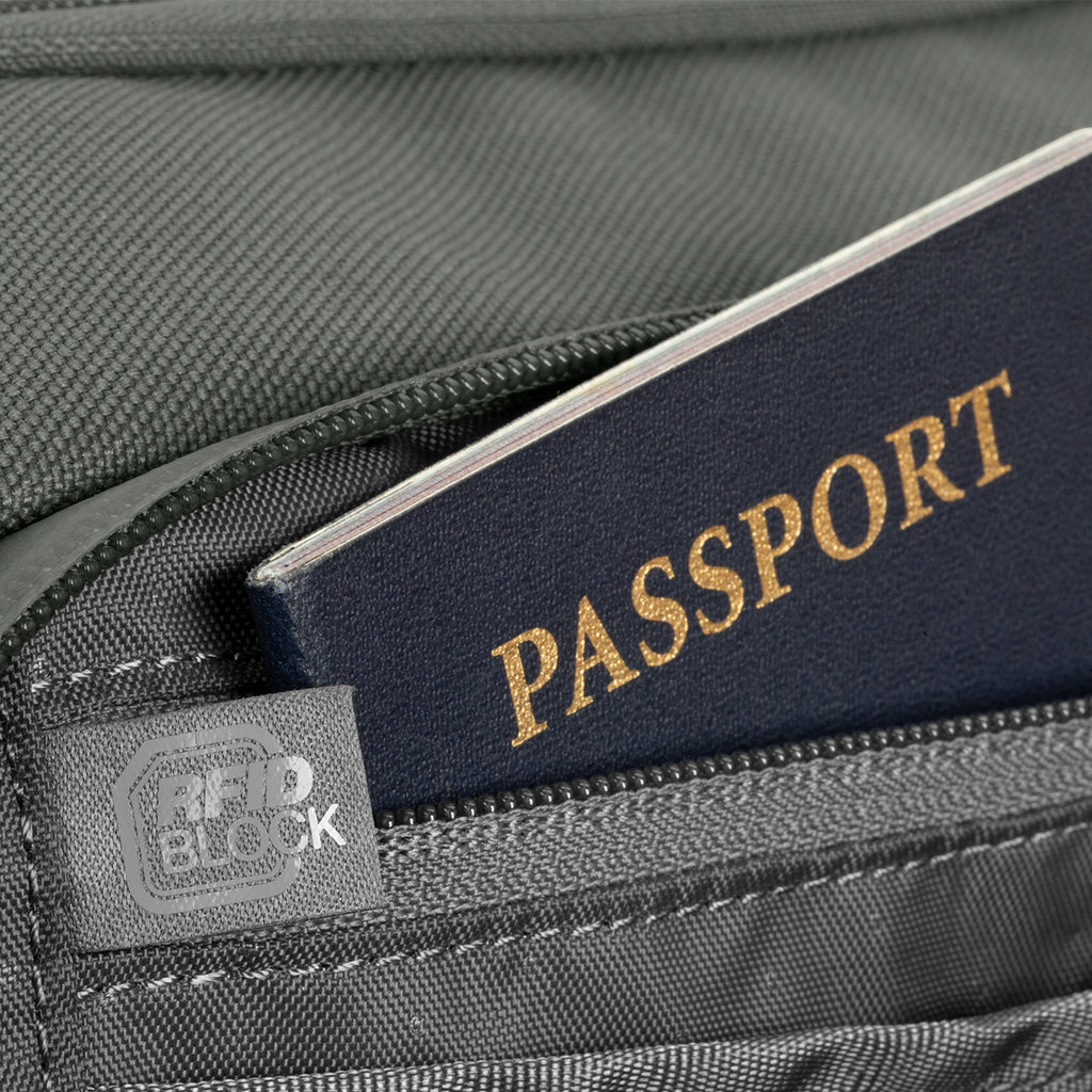 Cell phone pocket, Zip pocket, Document pocket, Pen pocket