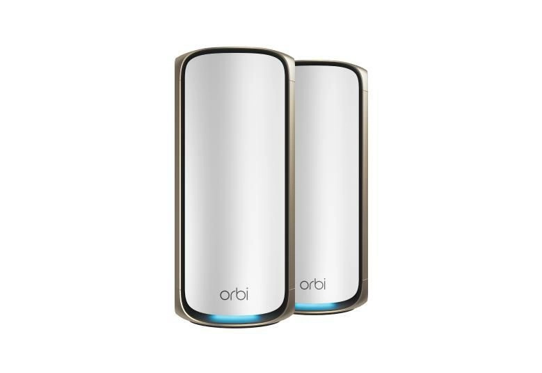NETGEAR Orbi 970 Series Quad-Band WiFi 7, 2-Pack. Kleur van het product: Grijs, Soort antenne: Intern, Type product: Mesh-satelliet. Wifi-band: Quad-band (2.4 GHz / 5 GHz-1 / 5 GHz-2 / 6 GHz), Wifi-standaard: Wi-Fi 6 (802.11ax), WLAN gegevensoverdrachtsnelheid (max): 11530 Mbit/s. Frequentie van processor: 2, 2 GHz, Intern geheugen: 2000 MB, Flash memory: 4000 MB. Breedte: 294 mm, Diepte: 144, 4 mm, Hoogte: 130, 8 mm. Aantal producten inbegrepen: 2 stuk(s)