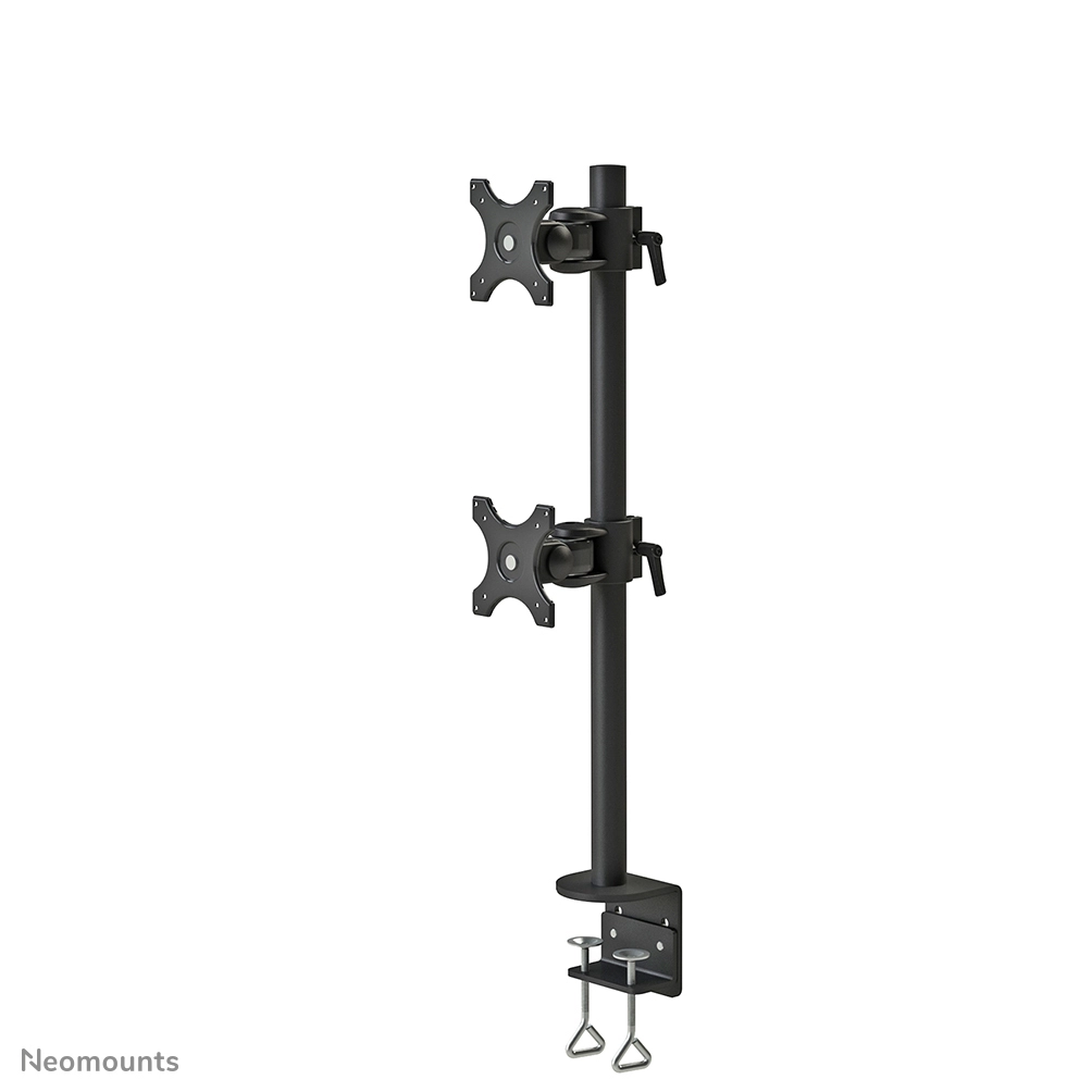 Met deze Neomounts by Newstar monitorarm, model FPMA-D700DV, bevestigt u twee flatscreens verticaal aan het bureau via een bureauklem.