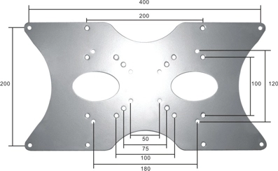 Zo kan een VESA gatenpatroon van 75x75, 100x100 en 100x200 mm worden vergroot naar VESA 200x200, 400x200 en 120x180 mm (JVC). Hierdoor kunt u ook de grotere schermen eenvoudig monteren aan een bureau-, plafond- , vloer- en wandsteun.