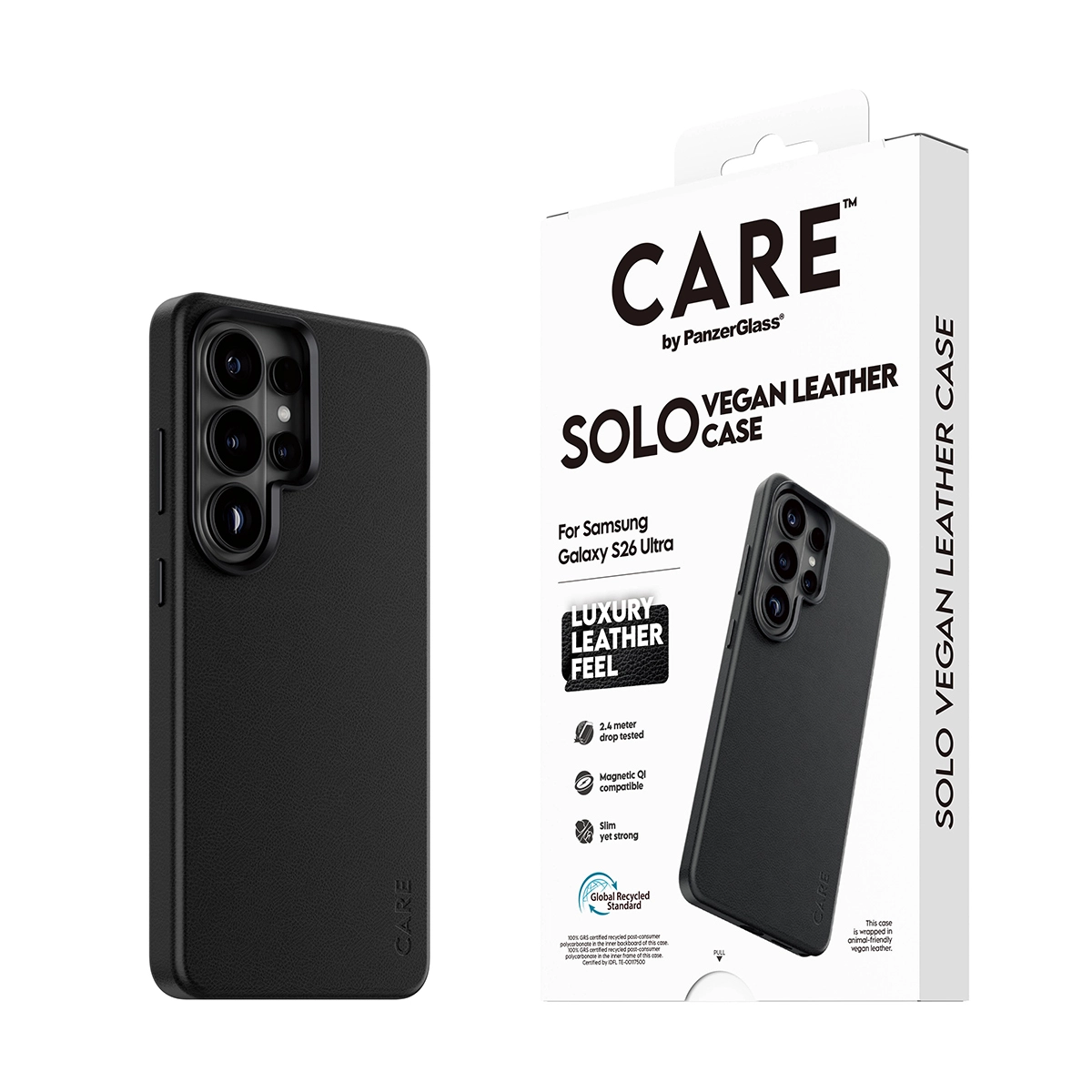 PanzerGlass CARE™ by ® Solo Case Black w. Qi Samsung Galaxy S26 Ultra. Type etui: Hoes, Merkcompatibiliteit: Samsung, Compatibiliteit: Samsung - Galaxy S26 Ultra, Kleur van het product: Zwart