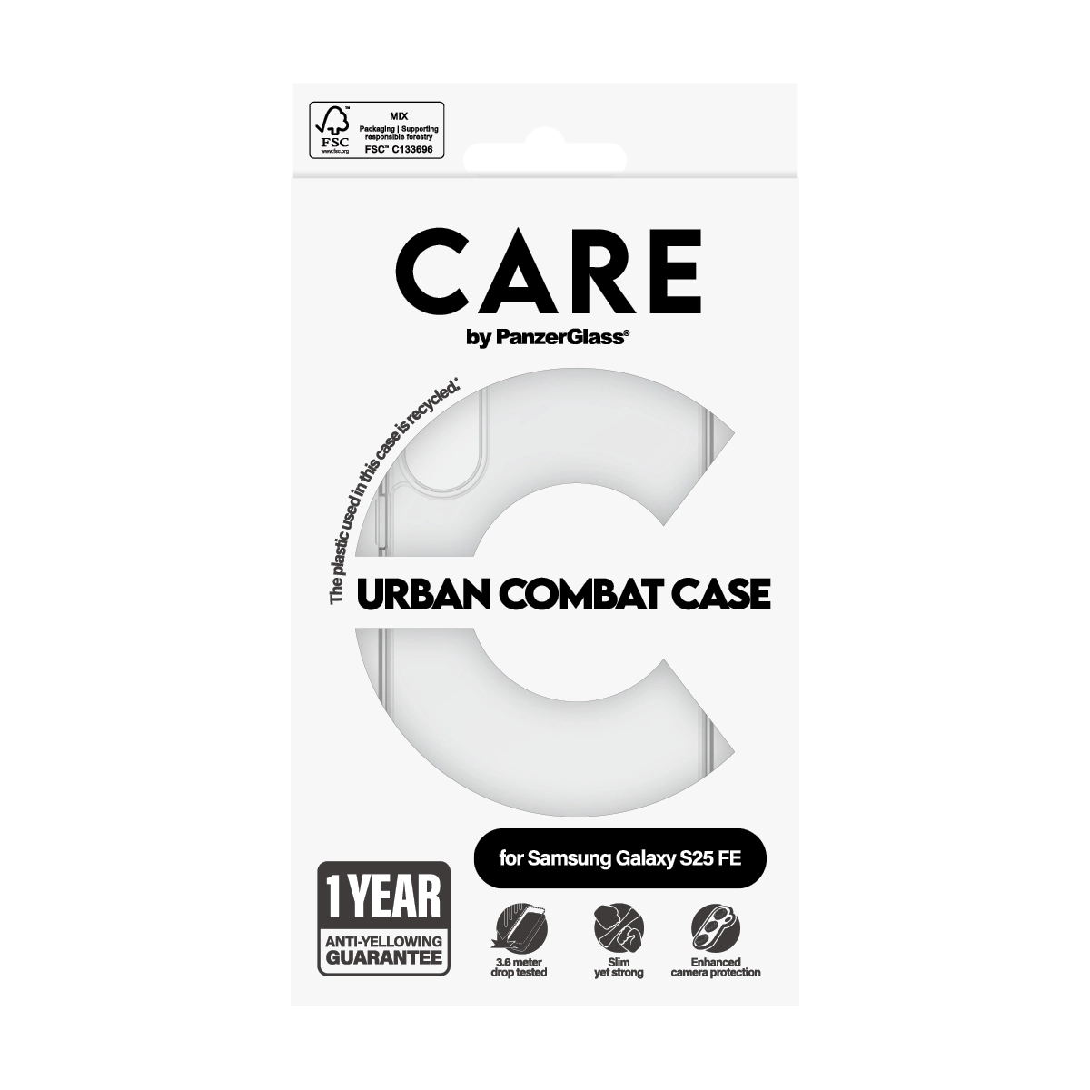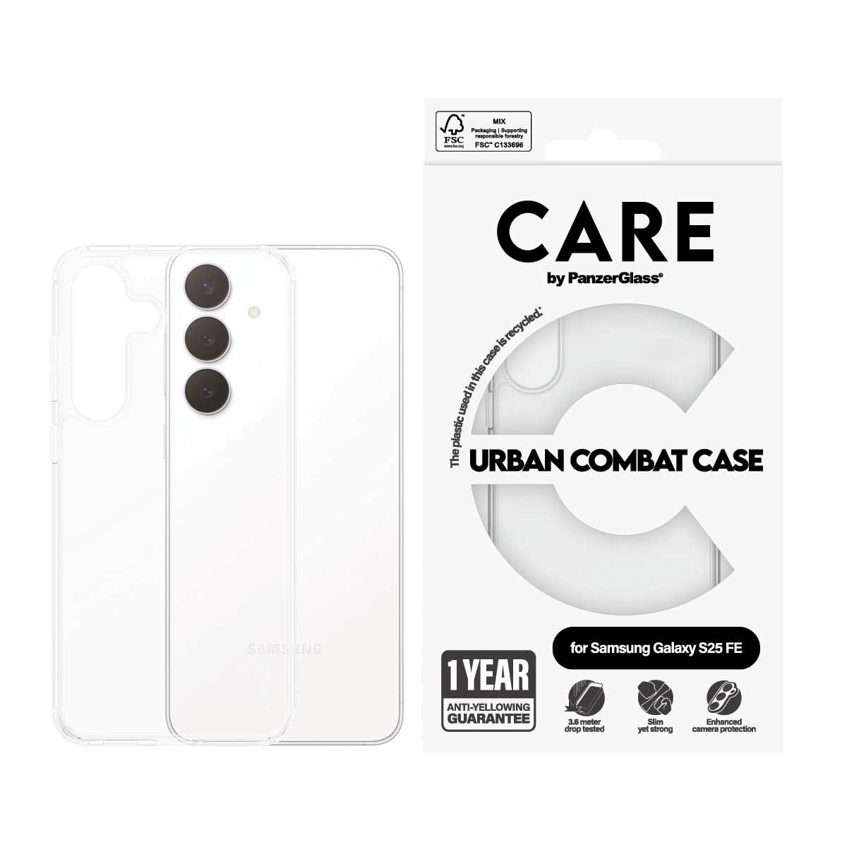 PanzerGlass CARE by ® Flagship Urban Combat Samsung Galaxy S25 FE 5G. Type etui: Hoes, Merkcompatibiliteit: Samsung, Compatibiliteit: Samsung - Galaxy S25 FE 5G, Kleur van het product: Transparant