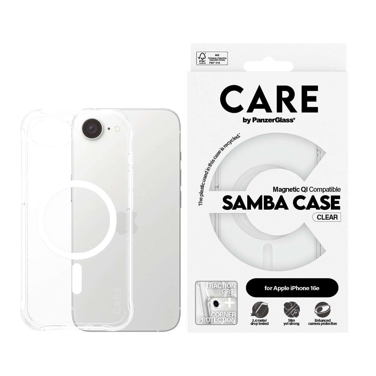 CARE by PanzerGlass Fashionable Samba Case Transparent w. MagSafe iPhone 16e