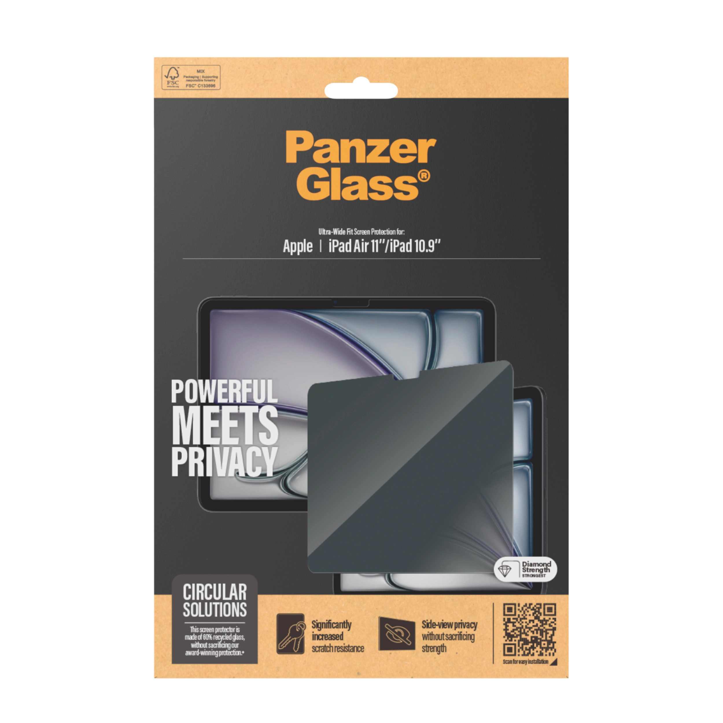 PanzerGlass Privacy Screen Protector Apple iPad Air 11\"/10.9\". Merkcompatibiliteit: Apple, Compatibiliteit: Apple - iPad Air 11" (2024), Apple - iPad 10.9" (2022), Apple - iPad Air 11" (2025), Apple - iPad. . . . Droge toepassing. Veiligheidsfunties: Krasbestendig, Schokbestendig. Filterfunctie privacy, Materiaal: Gehard glas, Polyethyleentereftalaat (PET), Silicone, Kleur van het product: Transparant. Aantal per verpakking: 1 stuk(s)