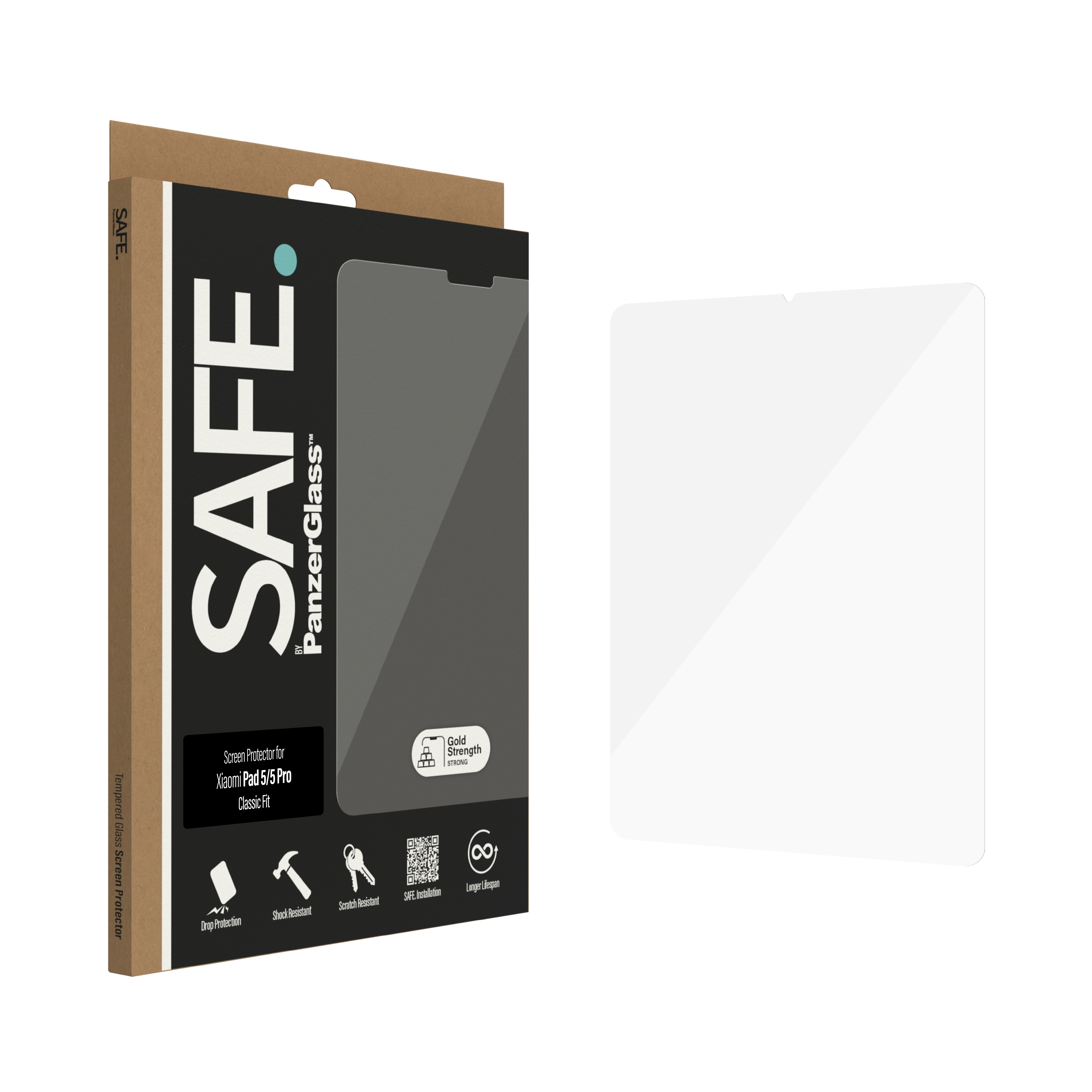 PanzerGlass SAFE. by ® Screen Protector Xiaomi Pad 5 | 5 Pro | Edge-to-Edge. Merkcompatibiliteit: Xiaomi, Compatibiliteit: Xiaomi - Pad 5, Xiaomi - Pad 5 Pro. Droge toepassing. Veiligheidsfunties: Krasbestendig, Schokbestendig. Materiaal: Gehard glas, Polyethyleentereftalaat (PET), Silicone, Kleur van het product: Transparant. Aantal per verpakking: 1 stuk(s)