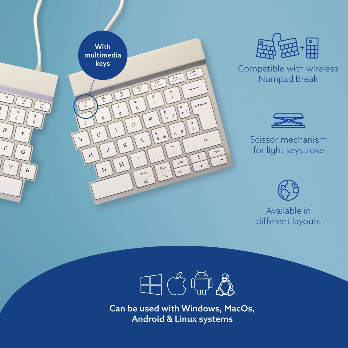 Ergonomic keyboard R-Go Split Break with break software split keyboard QWERTY (IT) Bluetooth white