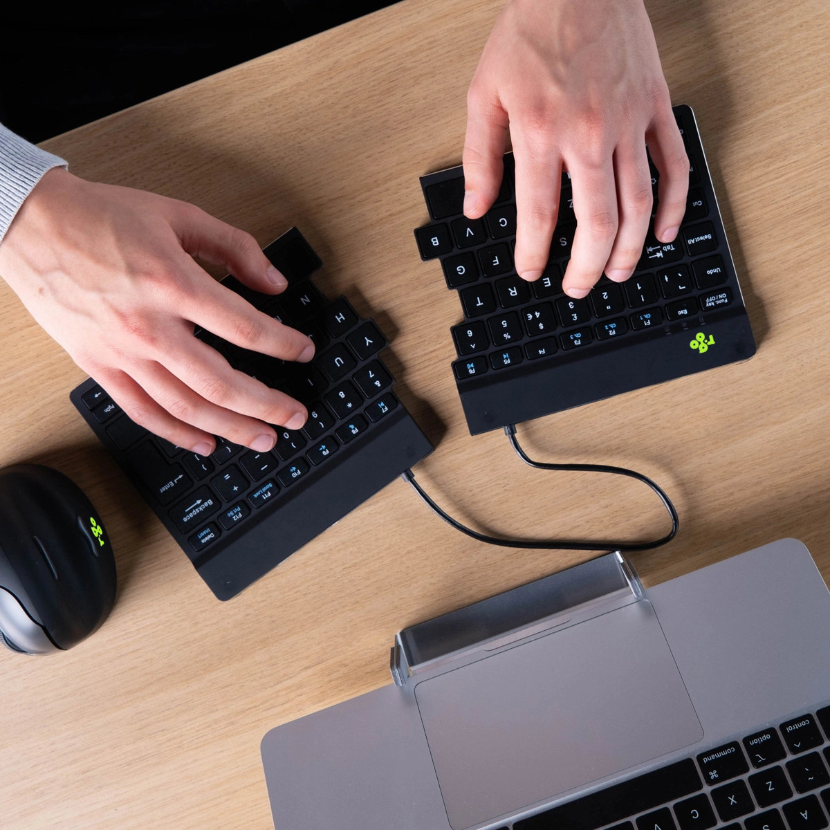 Het R-Go Split Break toetsenbord is een ergonomisch gesplitst toetsenbord met geïntegreerde pauzesoftware. Dit toetsenbord stimuleert je om regelmatig pauzes te nemen. Zo blijft de doorbloeding van je lichaam op peil, voorkom je overbelasting en blijf je fit tijdens je werkdag. Het toetsenbord bestaat uit twee losse delen, die je elk in gewenste opstelling kunt plaatsen. Dit splitsen voorkomt een knik in de polsen tijdens het typen. Typen met rechte polsen verlaagt de spierspanning en voorkomt afknelling van pezen en bloedvaten. Door de ingebouwde magneet kun je de twee afzonderlijke delen van het toetsenbord met 1 beweging veranderen in een compact toetsenbord. Het compacte formaat zorgt ervoor dat de muis altijd binnen handbereik ligt. Door de lichte toetsaanslag is er minimale spierspanning aanwezig tijdens het typen. Het toetsenbord is vlak, waardoor je handen en polsen tijdens het typen plat en ontspannen zijn. De LED- kleursignalen in het toetsenbord geven aan hoe gezond je werkt en wanneer het tijd is voor een pauze. Tijdens het typen verandert het lampje van kleur, zoals een stoplicht. Groen betekent ‘goed bezig’, oranje dat het tijd is voor een pauze, rood dat je te lang hebt doorgewerkt. Door deze subtiele kleursignalen ontvang je op een eenvoudige en positieve wijze feedback over je pauzegedrag. Dit product werkt samen met de R-Go Break Software dat de Benelux Office Product Award 2021 heeft gewonnen.