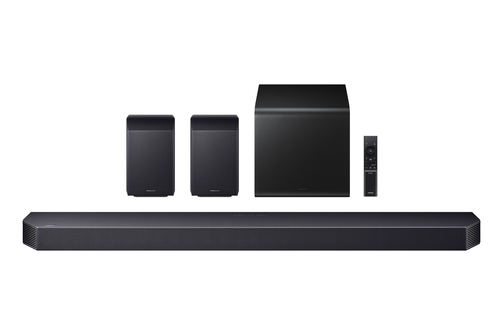 Met de afstandsbediening van je Samsung TV bedien je niet alleen de TV maar ook de belangrijkste Soundbarfuncties, zoals de aan-uitknop, het volume en de verschillende geluidseffecten.