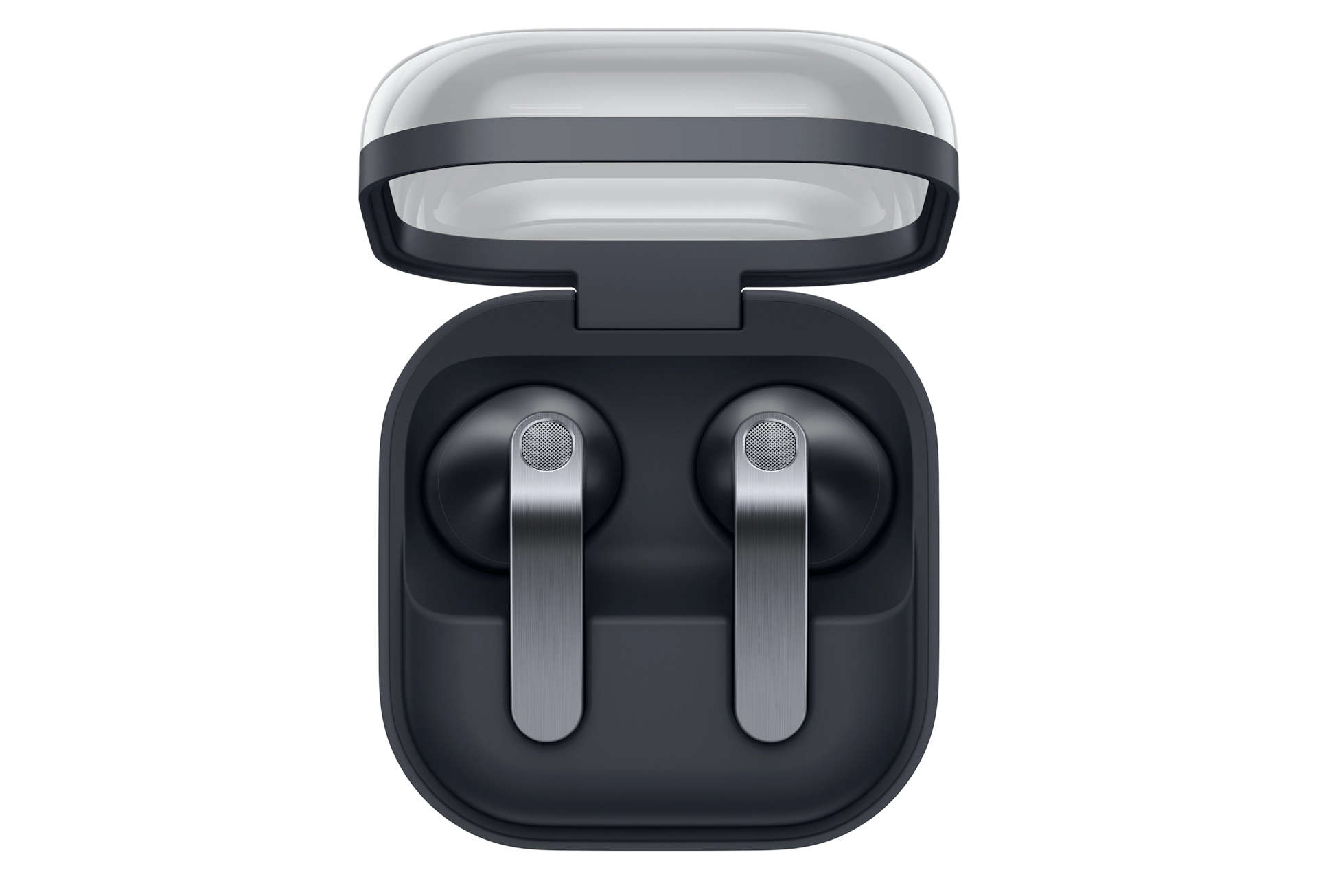 Controleer of de Galaxy Buds4 goed op zijn plaats zit door het doorzichtige klepje. Laad draadloos op en neem hem overal mee naartoe: dankzij het compacte, lichtgewicht ontwerp is hij gemakkelijk mee te nemen.
