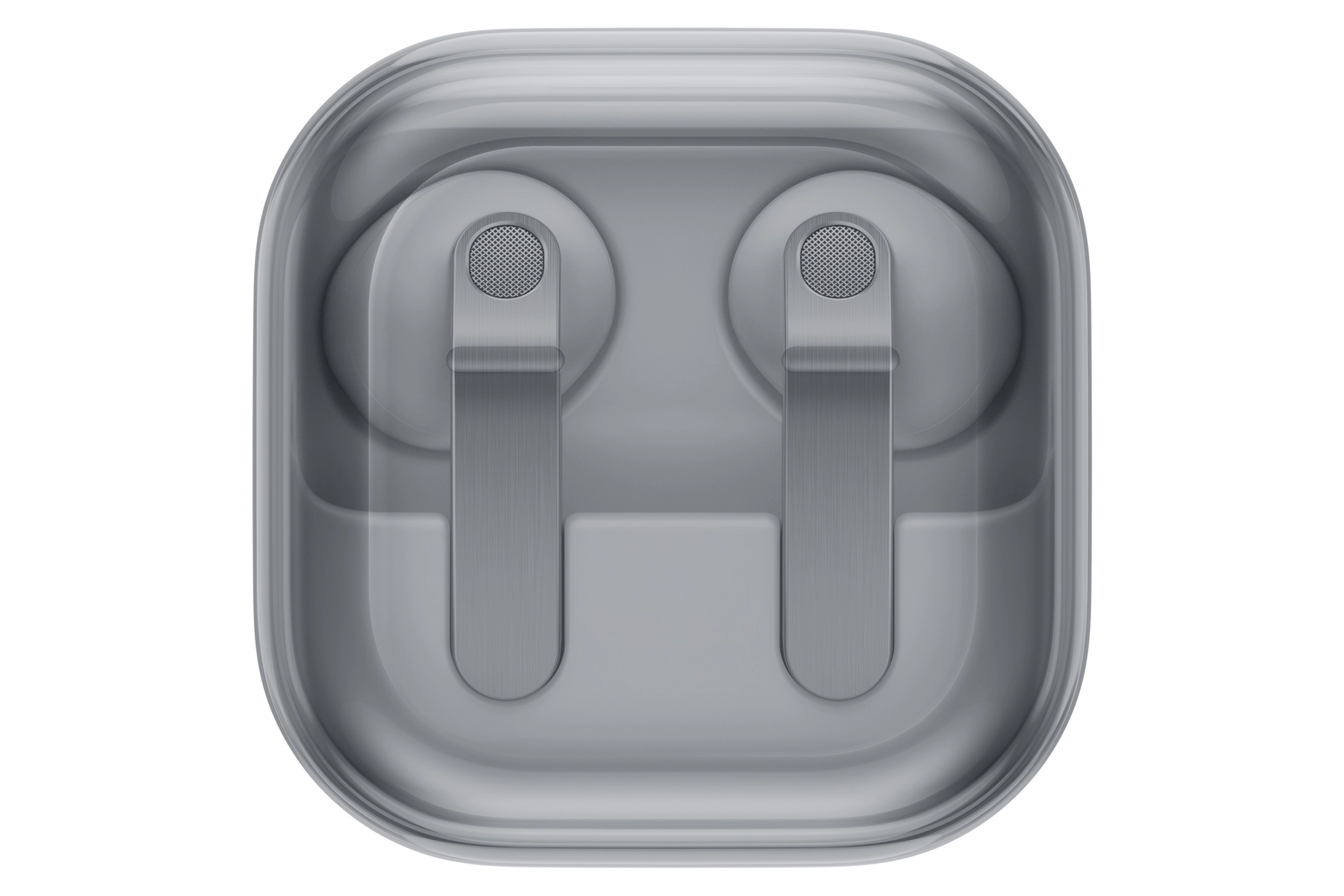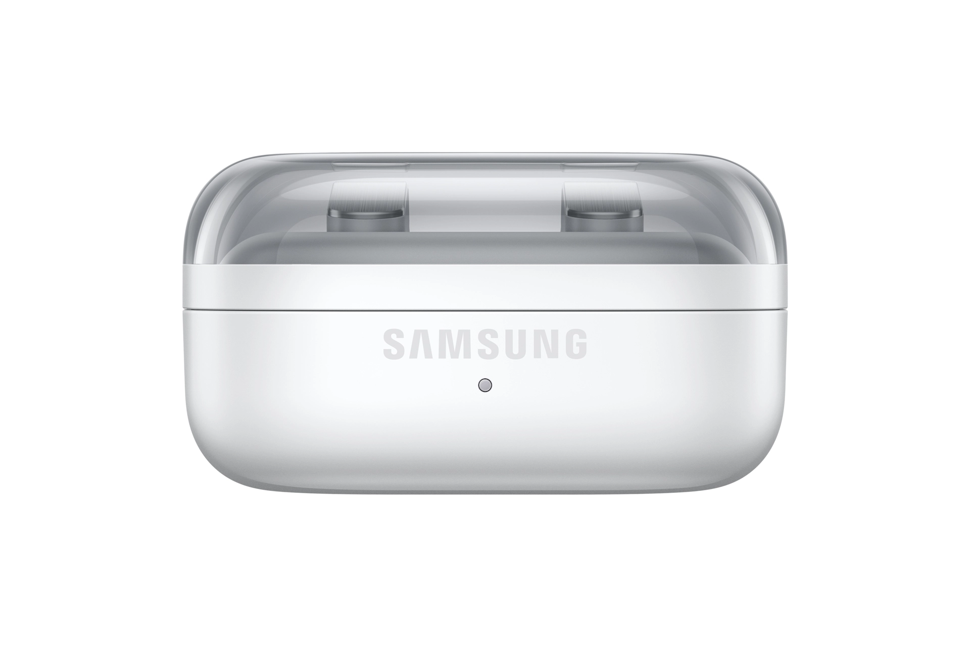 Controleer of de Galaxy Buds4 goed op zijn plaats zit door het doorzichtige klepje. Laad draadloos op en neem hem overal mee naartoe: dankzij het compacte, lichtgewicht ontwerp is hij gemakkelijk mee te nemen.