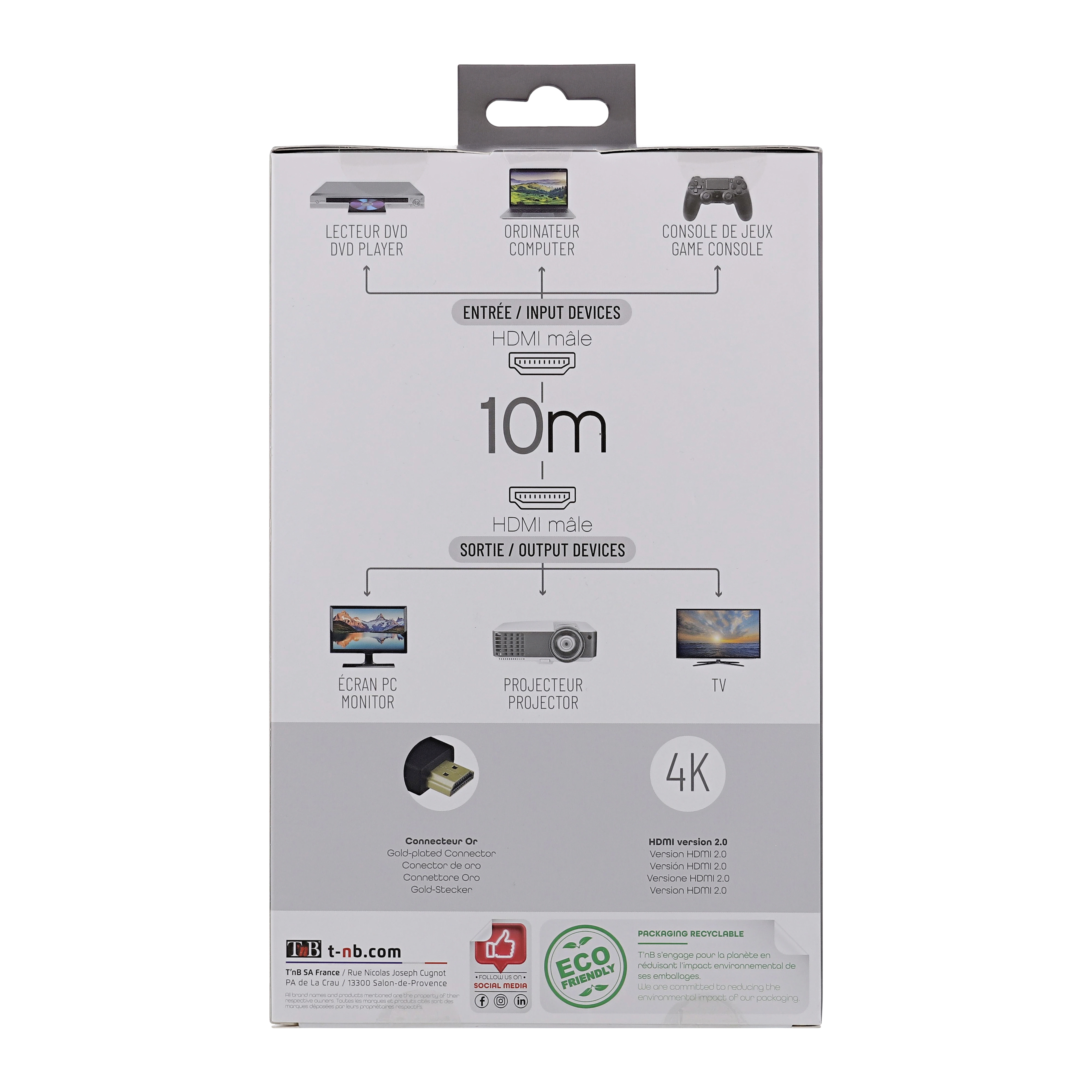 HDMI 2.0 male/male 19-pin 4K HDMI "High-Definition Multimedia Interface" cable to transmit high definition video and high resolution audio from a source (Blu-ray player, game console, etc. ) to your TV and Hi Fi equipment (4K TV, for example).