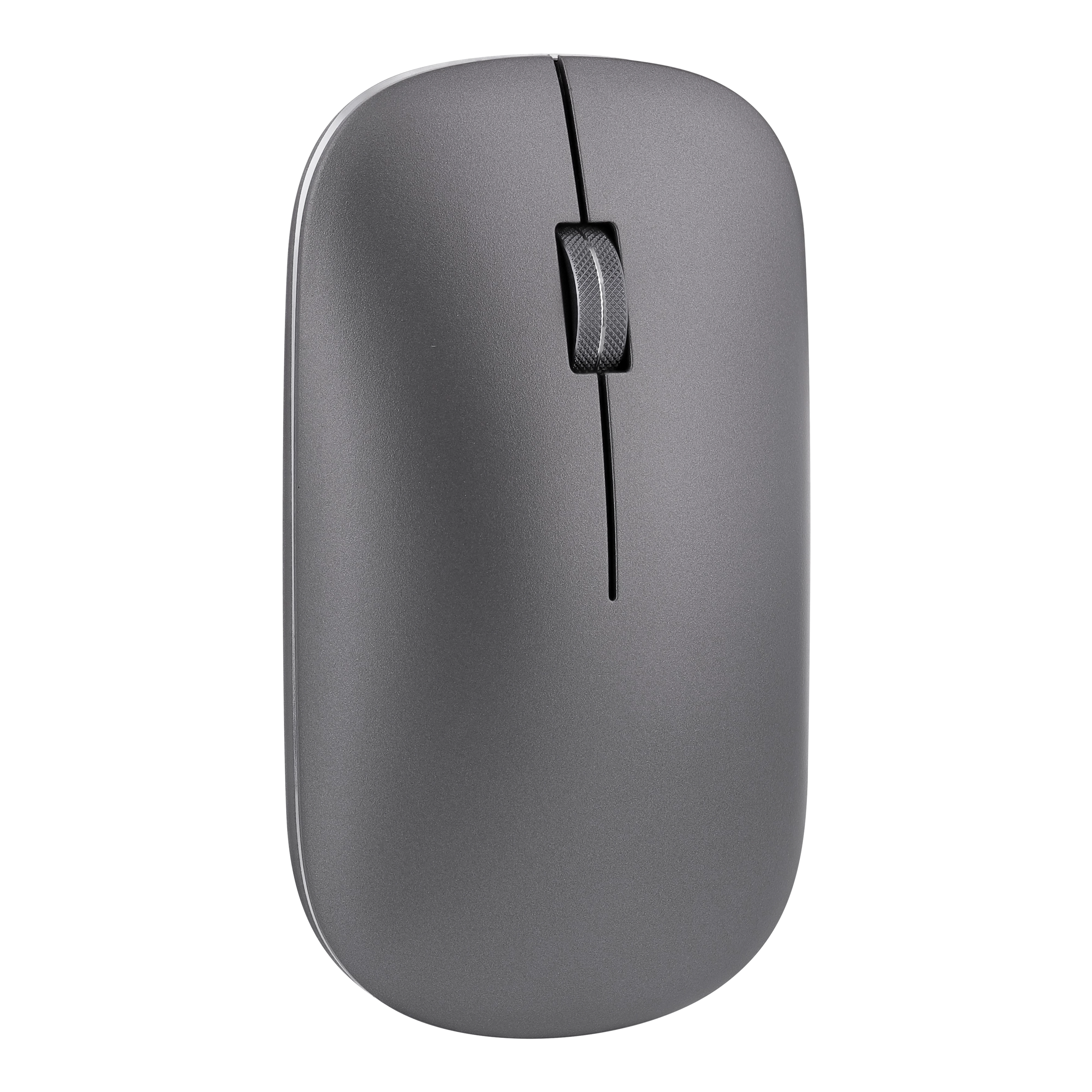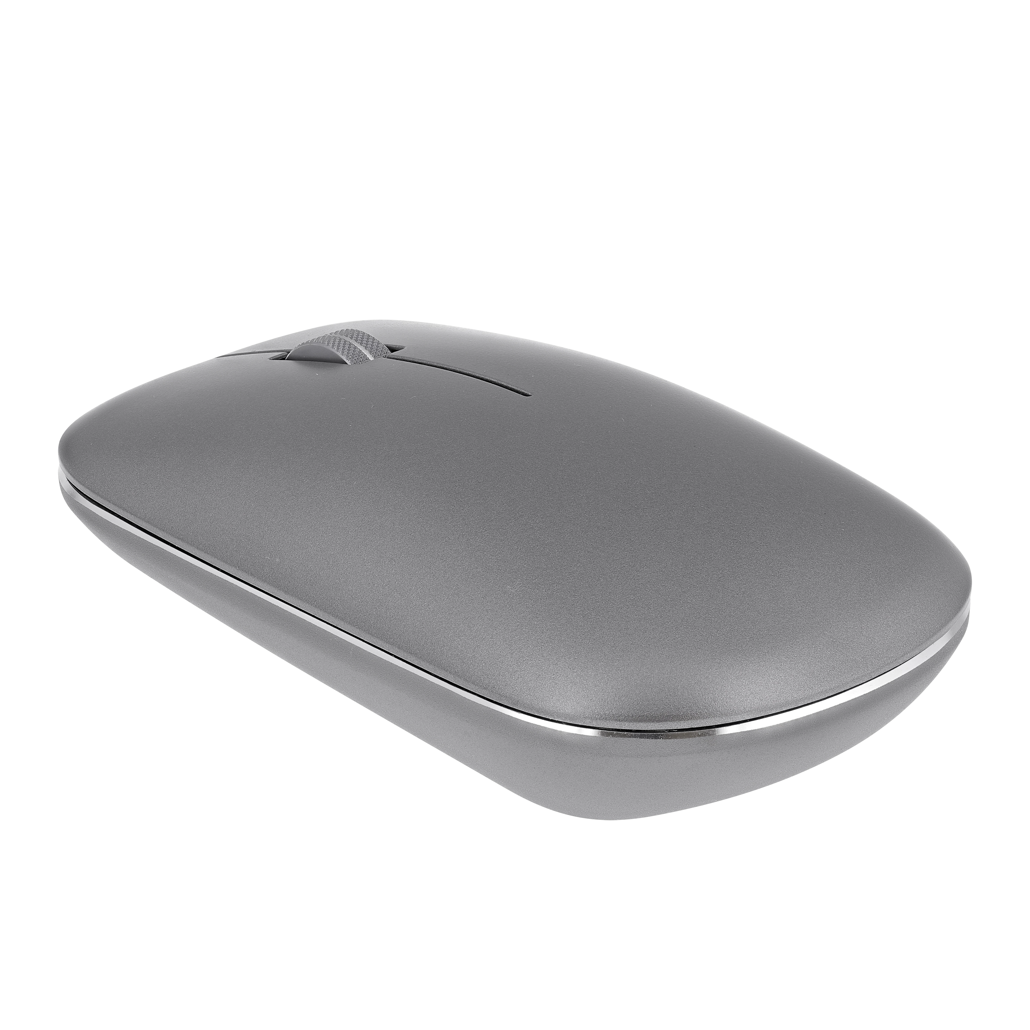 Stylish mouse with aluminum body and scroll wheel.