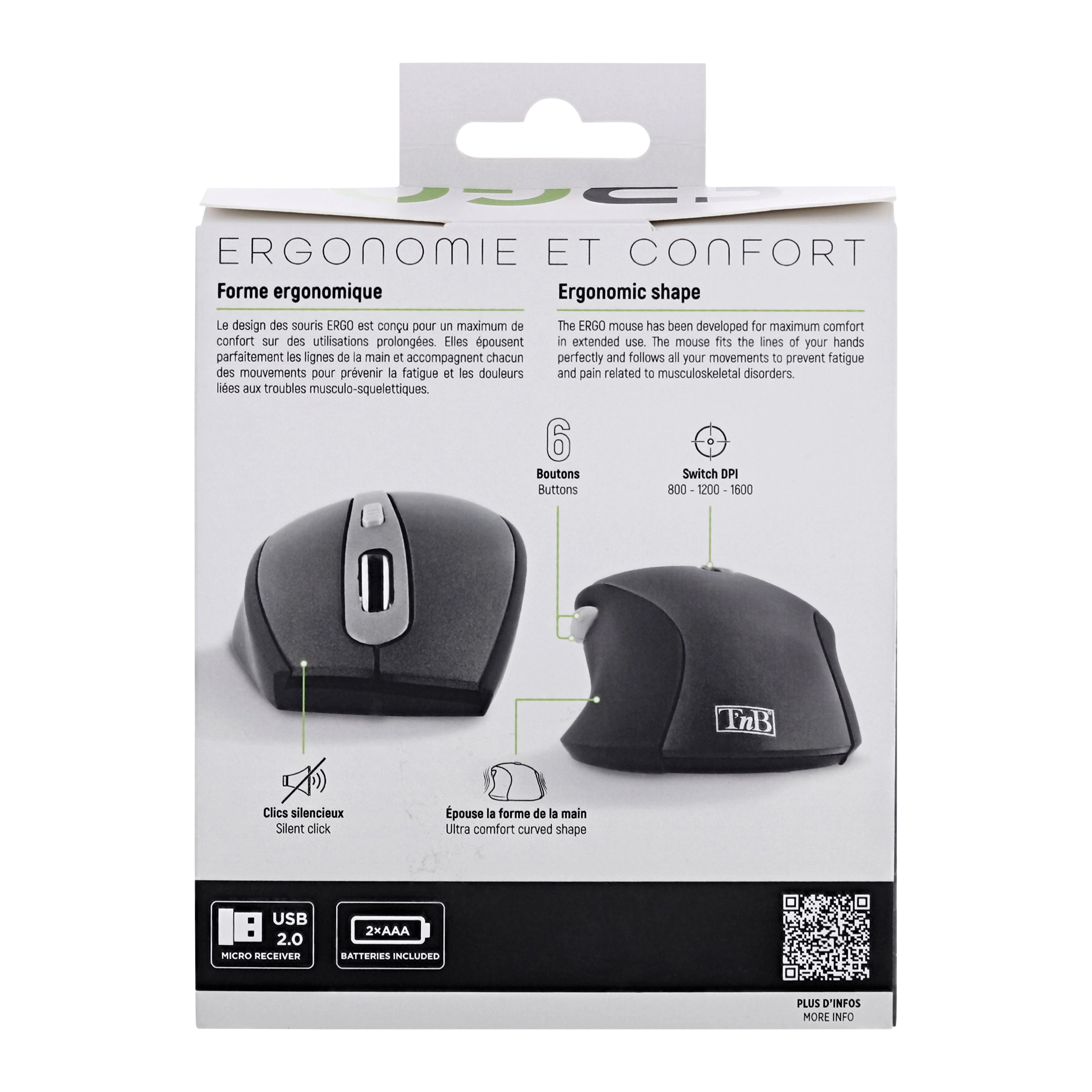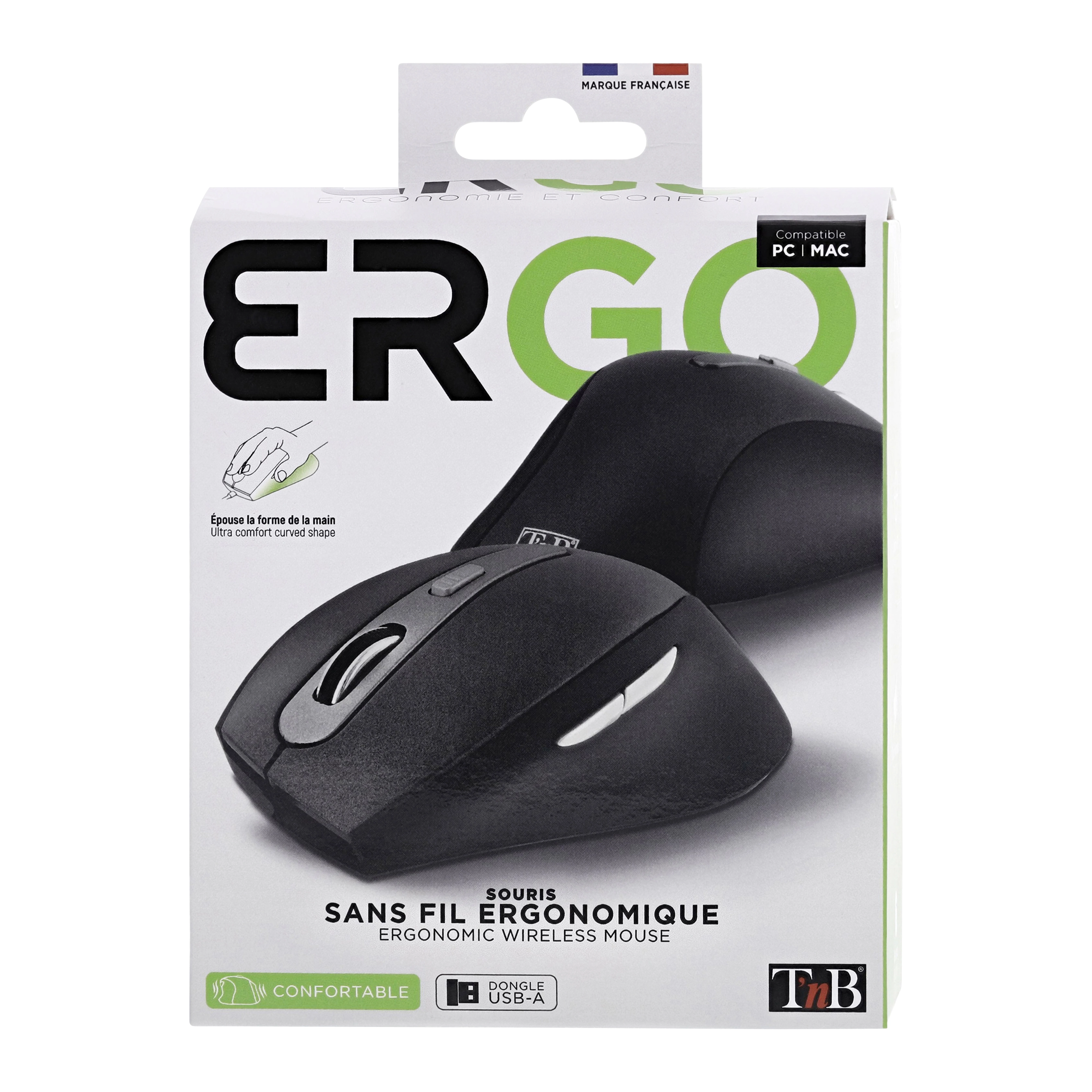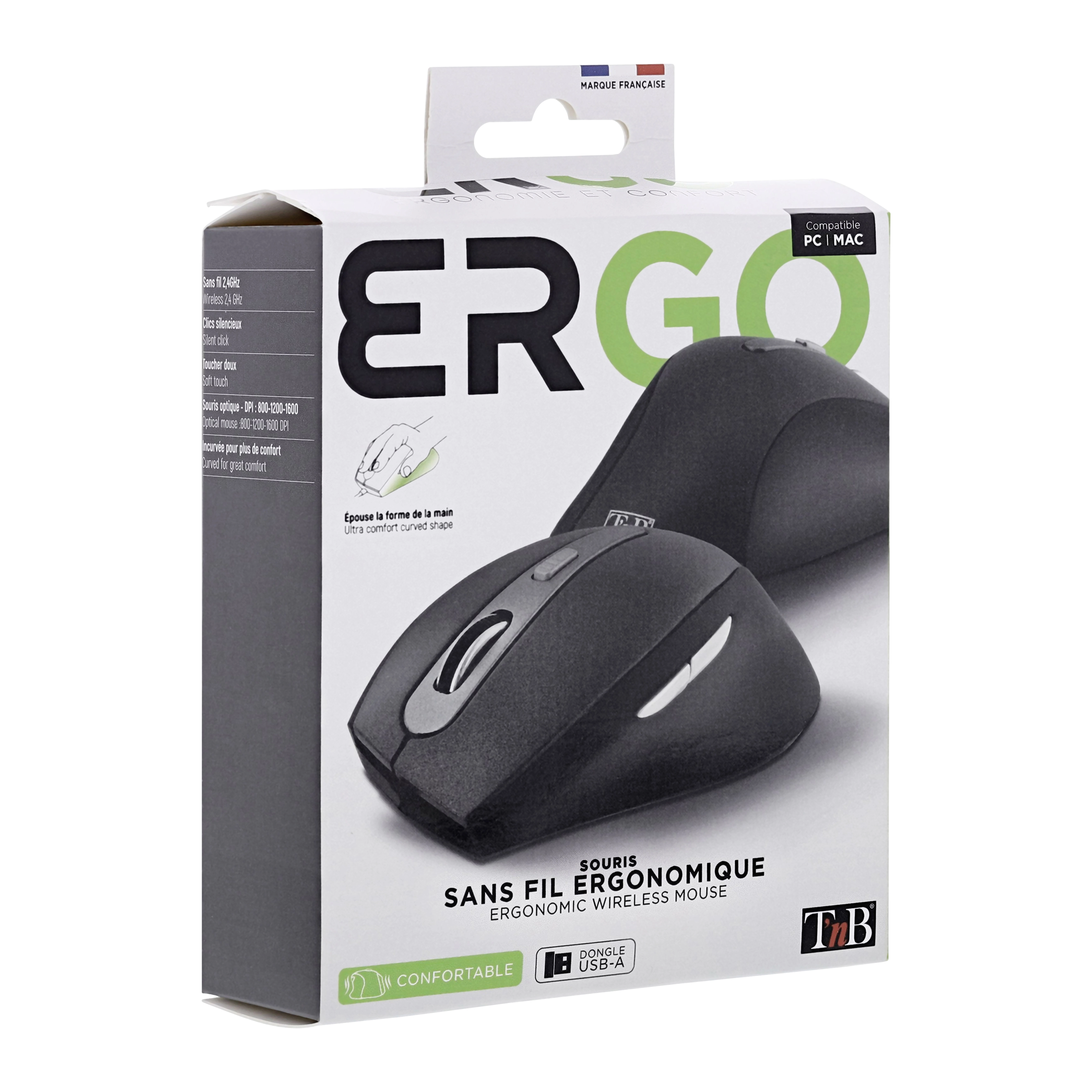 Ultra comfortable thanks to its curved shape that perfectly fits the shape of the hand. Ensures a pleasant grip and more efficient control. Plug&Play, it connects automatically once the USB dongle is plugged into the computer. The on-the-fly sensitivity adjustment allows you to adjust the speed of the mouse according to your needs with ease.