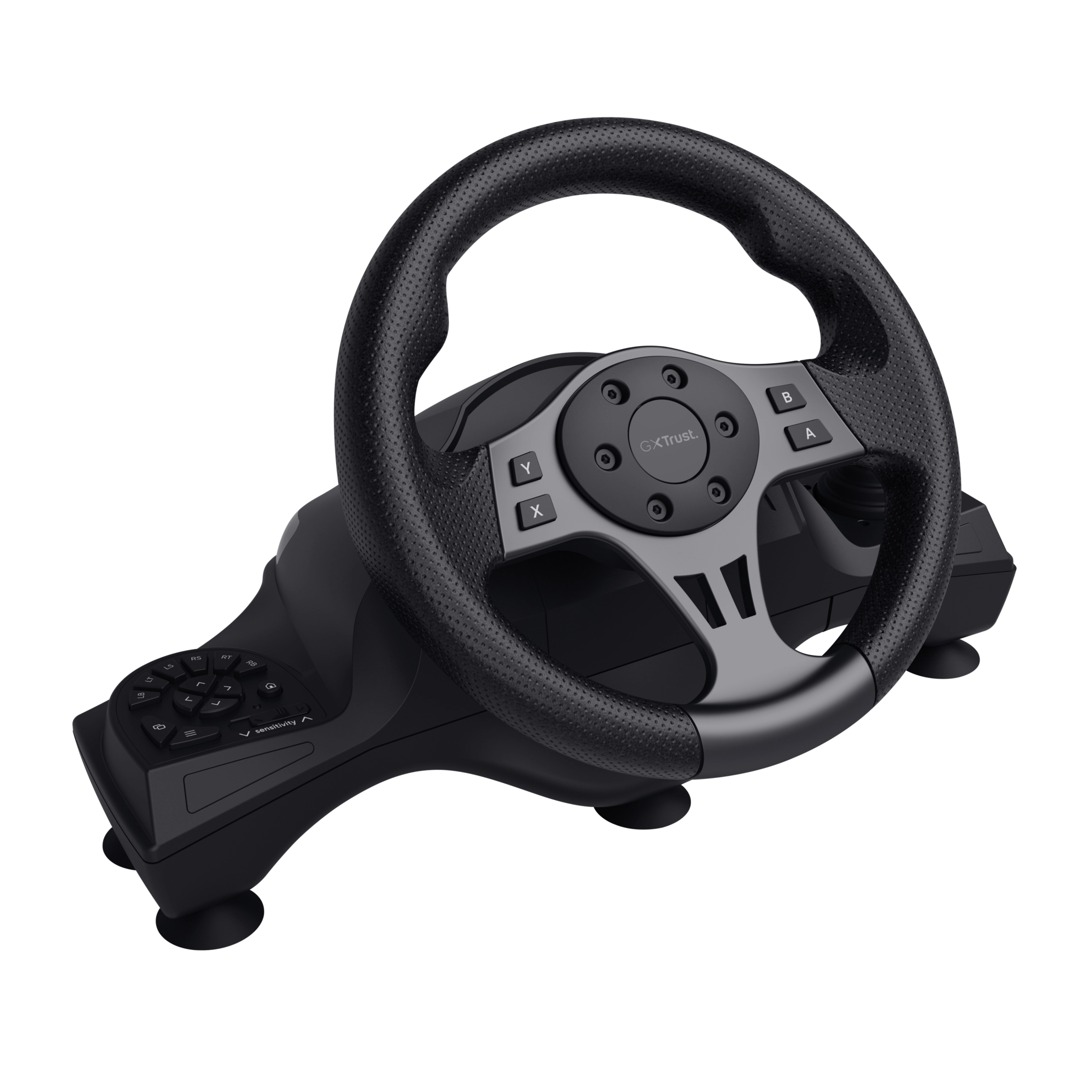 Trust GXT 289 Movi. Soort apparaat: Stuurwiel + pedalen, Gaming platforms ondersteund: Nintendo Switch, PlayStation 4, Xbox One S, Xbox One X, Xbox Series S, Xbox Series X, Gaming controle functie toetsen: Selectieknop, Startknop. Connectiviteitstechnologie: Bedraad, Aansluiting: USB. Kleur van het product: Zwart, Snoerlengte: 2 m. Stroombron: Kabel. Breedte: 282 mm, Diepte: 435 mm, Hoogte: 217 mm