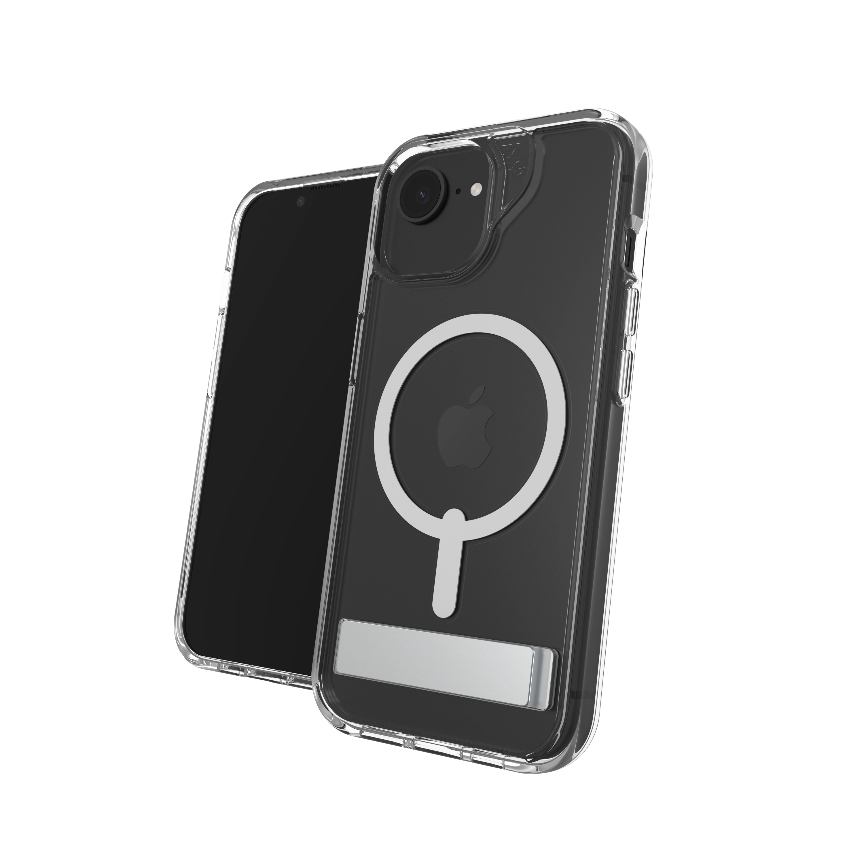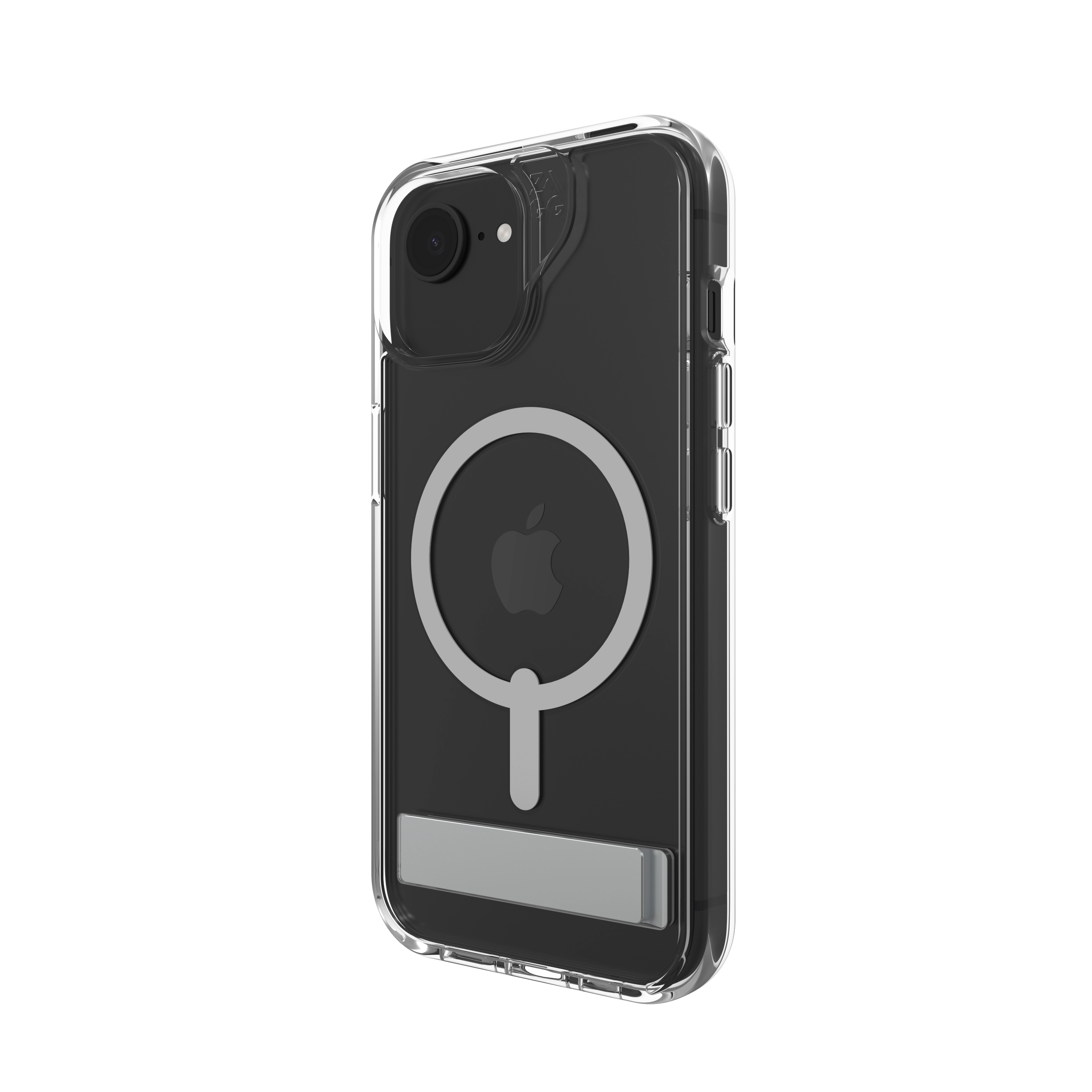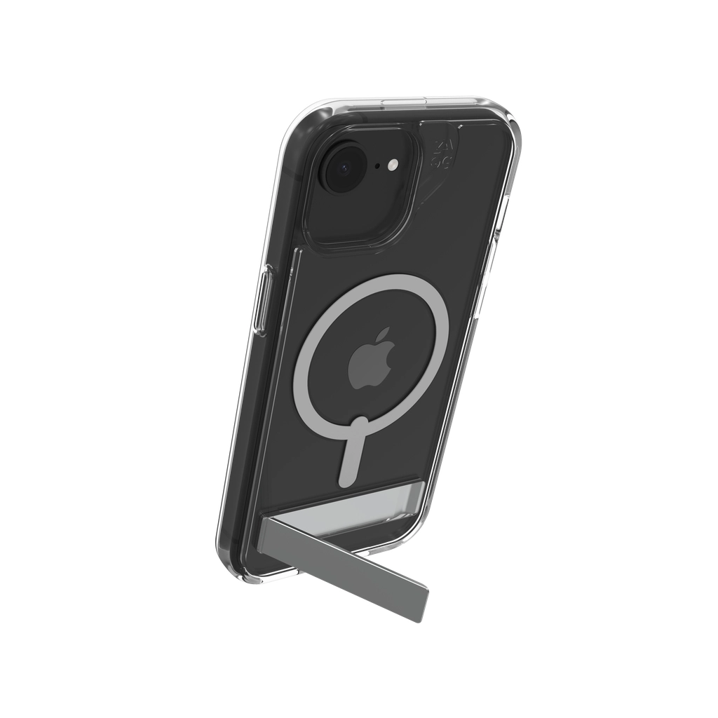 ZAGG Crystal Palace Snap Kickstand. Type etui: Hoes, Merkcompatibiliteit: Apple, Compatibiliteit: iPhone 17e/16e/15/14/13, Maximale schermgrootte: 15, 5 cm (6.1"), Oppervlakte kleur: Monochromatisch, Kleur van het product: Transparant, Bureaustandaard