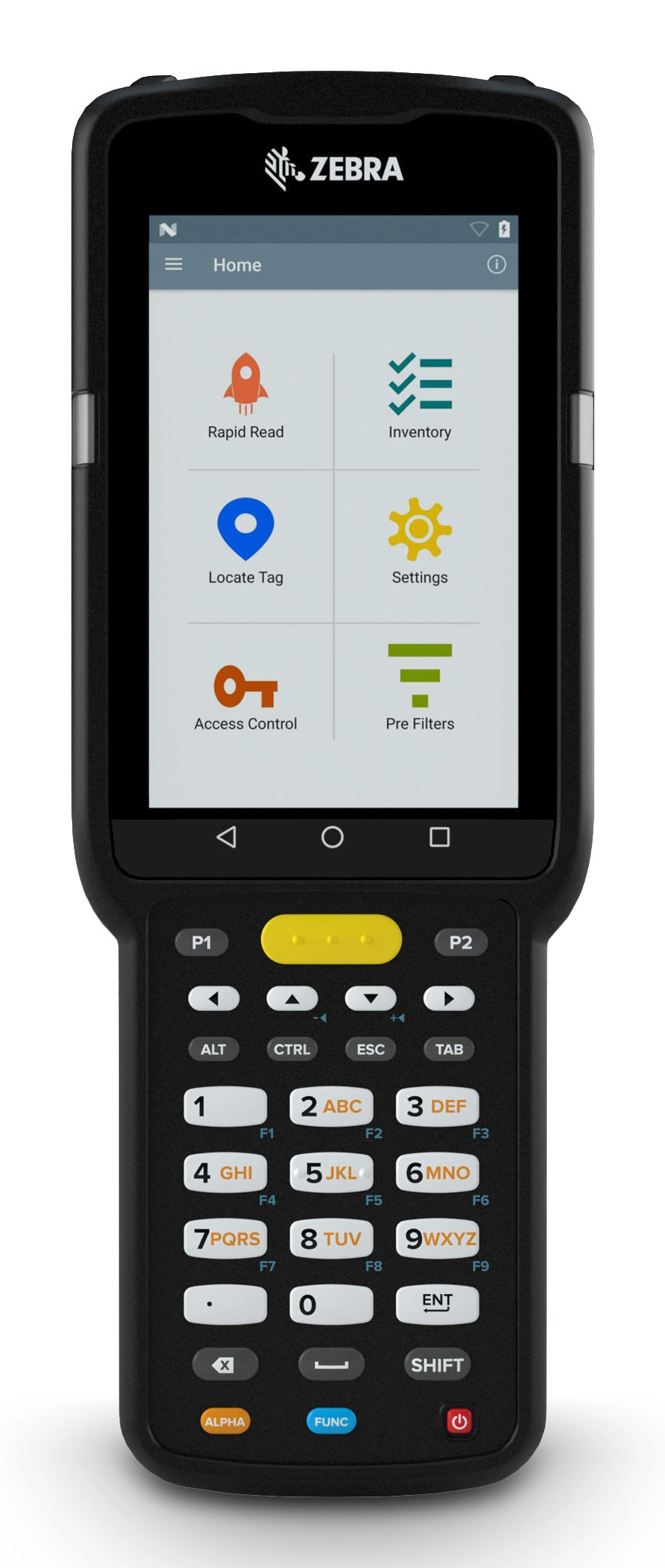 Zebra MC3390xR. Beeldschermdiagonaal: 10, 2 cm (4"), Resolutie: 800 x 480 Pixels. Intern geheugen: 4 GB, Flash memory: 32 GB, Compatibele geheugenkaarten: SDHC, SDXC. Frequentie van processor: 2, 2 GHz, Processorfabrikant: Qualcomm, Processorfamilie: Snapdragon, Processormodel: 660. Inclusief besturingssysteem: Android. Wi-Fi-standaarden: 802.11a, 802.11b, 802.11g, Wi-Fi 4 (802.11n), Wi-Fi 5 (802.11ac). Toetsenbordindeling: Alfanumeriek, Barcodelezer