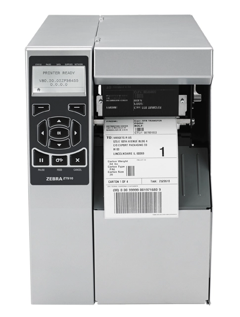 TT Printer ZT510; 4' 300 dpi Euro and UK cord Serial USB Gigabit Ethernet Bluetooth LE Rewind Mono ZPL